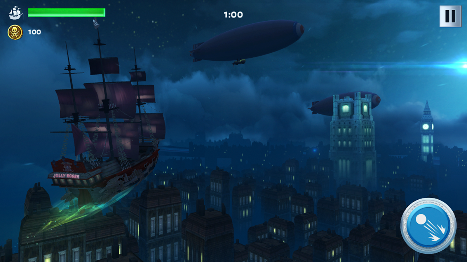 Встаньте к орудиям и отразите атаки с воздуха! Держитесь крепче, вас ждет захватывающий перелет через Лондон на летучем корабле! Вы встанете у штурвала «Веселого Роджера» и скроетесь в Нетландии в официальной игре по фильму студии Warner Bros. ПЭН