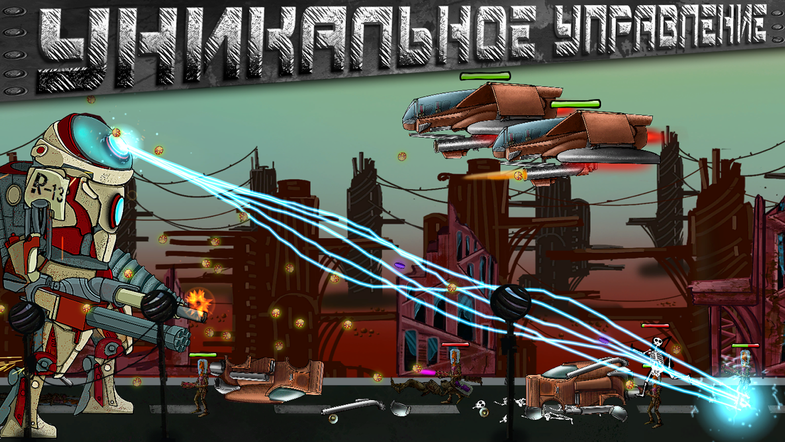 Почувствуй полный контроль над гигантским мехом который несет хаос. С уникальной системой управления жестами ты поймешь что такое полный контроль над разрушительной машиной.