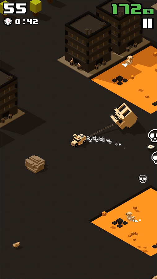 Wrecky Ball – веселая игра на андроид, в которой вам предстоит управлять машиной с привязанным к ней огромным мячом. Вашей главной задачей в этой игре будет гонять по огромному миру и разрушать все здания на своем пути с помощью мяча. Разрушайте все что видите и собирайте деньги, но остерегайтесь задеть овец, пасущихся на лугу, мячом, ели вы все же это сделаете - с вас снимутся очки. Повеселитесь от души, играя в эту игру и зарабатывая достаточное количество очков, чтобы посоревноваться со своими друзьями. На собранные деньги вы сможете приобрести новые автомобили и открыть новые миры. В игре случайным образом генерируют среды, так что приготовьтесь к непредсказуемым приключениям в пиксельном мире.