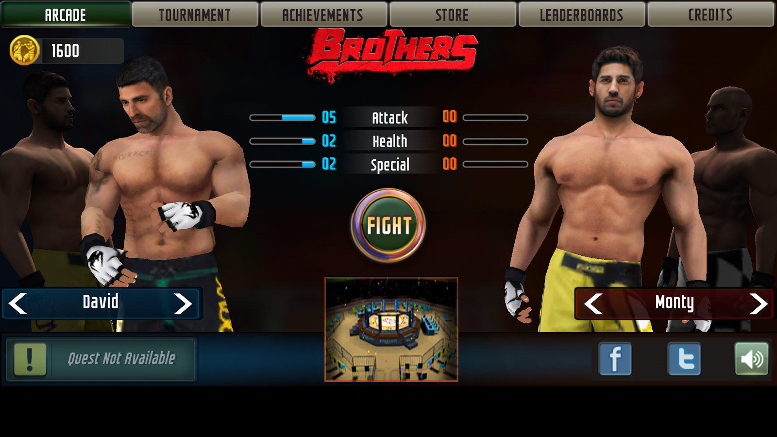 Brothers: Clash of Fighters – бои без правил на андроид, сделанные по сюжету одноименного фильма про двух братьев боксеров. В это игре вы выбираете, за какого из братьев вы будете сражаться и своего соперника. Тренируйтесь и выходите на ринг, где нет правил и вы сможете применять различные приемы, чтобы победить соперника. Мастерски управляйте своим бойцом и наносите сильные удары руками и ногами, а также разрабатывайте серию комбо ударов, чтобы отправить своего соперника в нокаут. В этой игре вас ждут восемь уникальных персонажей, четыре различные арены для боя и два режима игры. Играйте в эту игру и докажите всем что вы самый лучший боец.