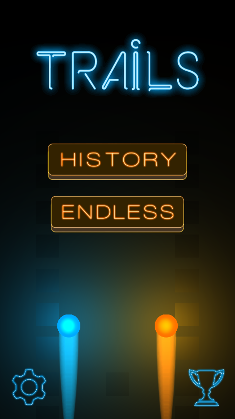 Trails – музыкальная игра на андроид, в которой вы проверите на деле свои рефлексы. В этой игре вам предстоит управлять двумя сферами, каждая для своего пальца, и перемещать их по рельсам, обходя все препятствия на своем пути. Проверьте свои рефлексы и докажите всем, что вы лучший игрок, пройдя все уровни и заняв первое место в таблице лидеров. В этой игре вас ждет восемь различных миров, оформленных в разных цветовых решениях, таких как: водород, гелий, неон, аргон и другие. Пройдите все 64 уровня, которые будут воспроизводиться в случайном порядке, и соберите все достижения и бонусы.
