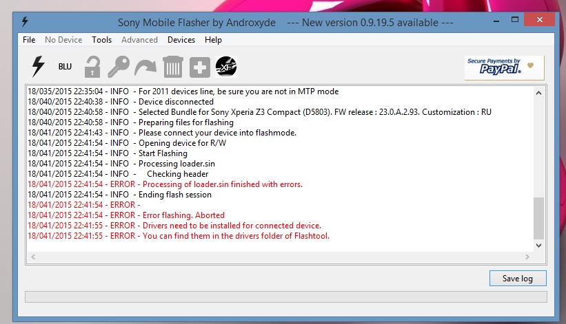 Всем привет! Пытаюсь по инструкции по получению root прав на Sony Xperia Z3 compact D5803 с номером сборки прошивки 23.4.A.0.546 - флештул ругается
