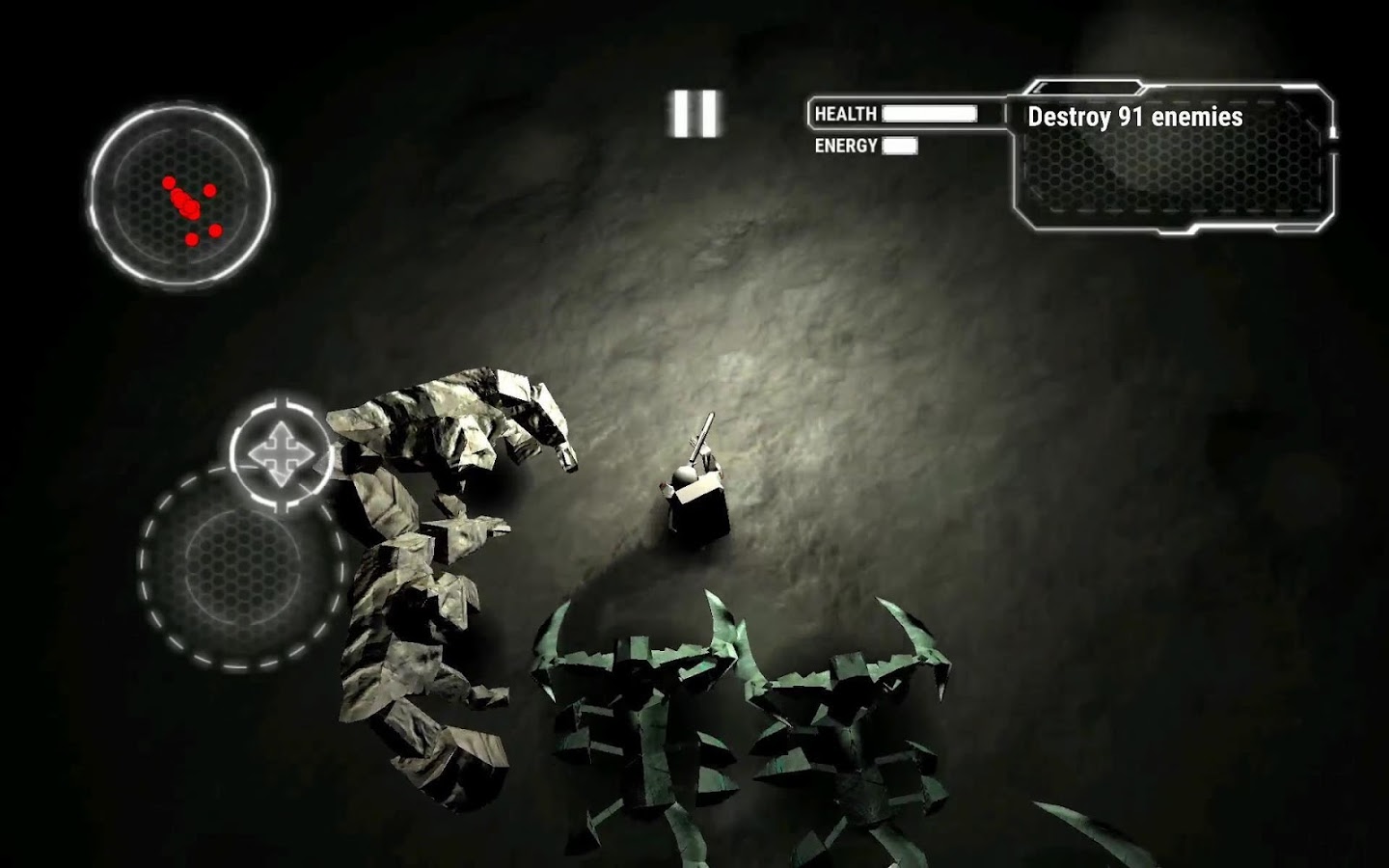 Американская база, которая находиться на Луне, перестала отвечать и передавать информацию. Правительство решило высадить туда одного смельчака, который вызвался исследовать базу и выявить причины, по которым она не работает. Выяснилось, что на нее напали монстры и уничтожили все. Теперь ваша задача помочь астронавту выжить в этих экстремальных условиях и уничтожать врагов с помощью мощного оружия, освещая себе путь в полной темноте фонариком. Продержитесь как можно дольше и управляйте своим героем с помощью джойстиков на экране вашего телефона.