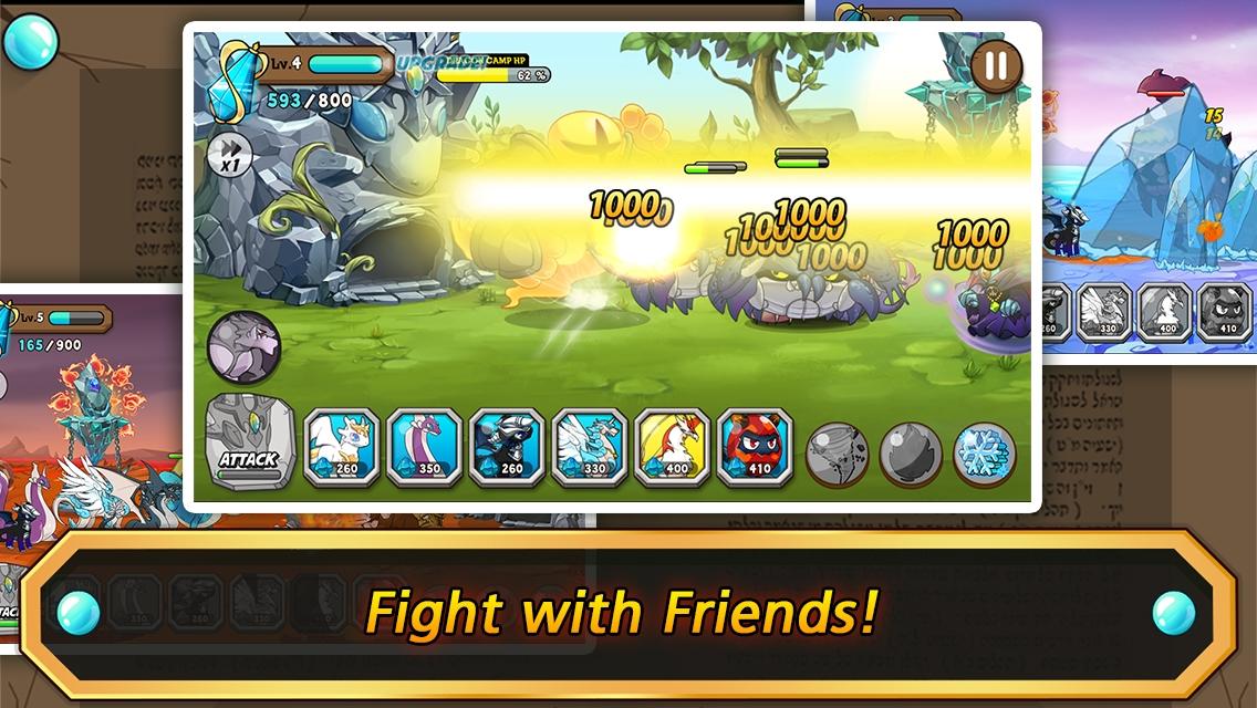 Dragon Village Saga – бесконечные сражения за право владеть островом в этой игре на андроид. Вы отправитесь в увлекательное путешествие на драконий остров, который хотят захватить ужасные монстры. Вашей задачей будет собрать сотни очаровательных и милых драконов и направить все их силы и способности на врагов. Исследуйте весь мир вокруг себя и очистите все уровни от многочисленных монстров. Используйте все свои умения и боевые навыки и дайте отпор врагам. Установите бесконечный режим игры и проверьте на деле способности своей команды. Собирайте монетки и приобретайте обновления и улучшения для своих героев.