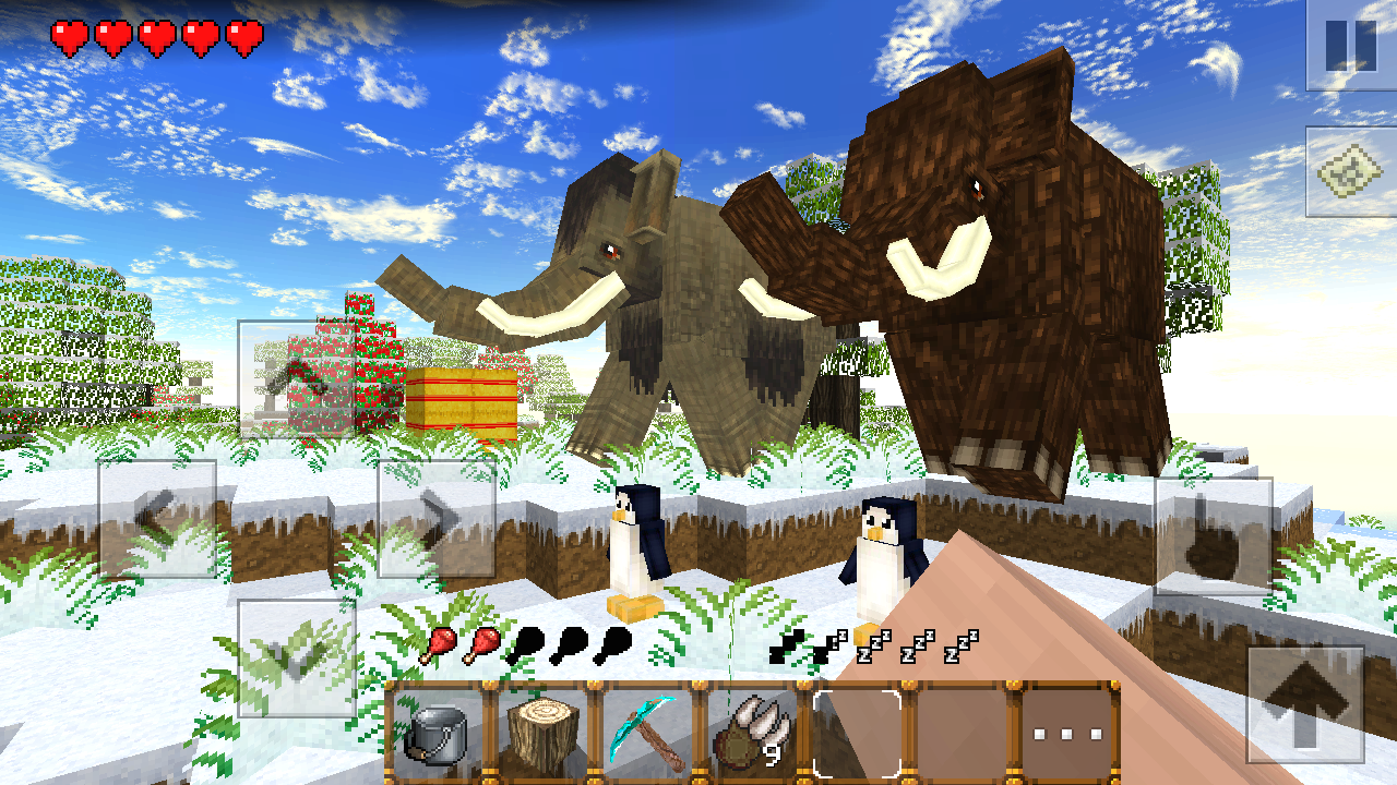 Winter Craft 4: Ice Age – откройте для себя новый доисторический мир, состоящий из блоков. Отправляйтесь в захватывающее путешествие в вечную мерзлоту, где обитают доисторические животные, такие как мамонты, саблезубые тигры, гризли и пингвины. Исследуйте мир вокруг себя и добывайте себе пропитание, охотясь на мелких животных, а также создавайте себе оружие для защиты от хищников. Попытайтесь выжить в этом мире полном опасностей и преград. Добывайте полезные ресурсы, стройте себе жилье для ночлега и защиты от животных. Заведите себе домашнее животное, которое будет защищать вас. Используйте более 32 видов брони и многочисленные предметы для создания оружия.
