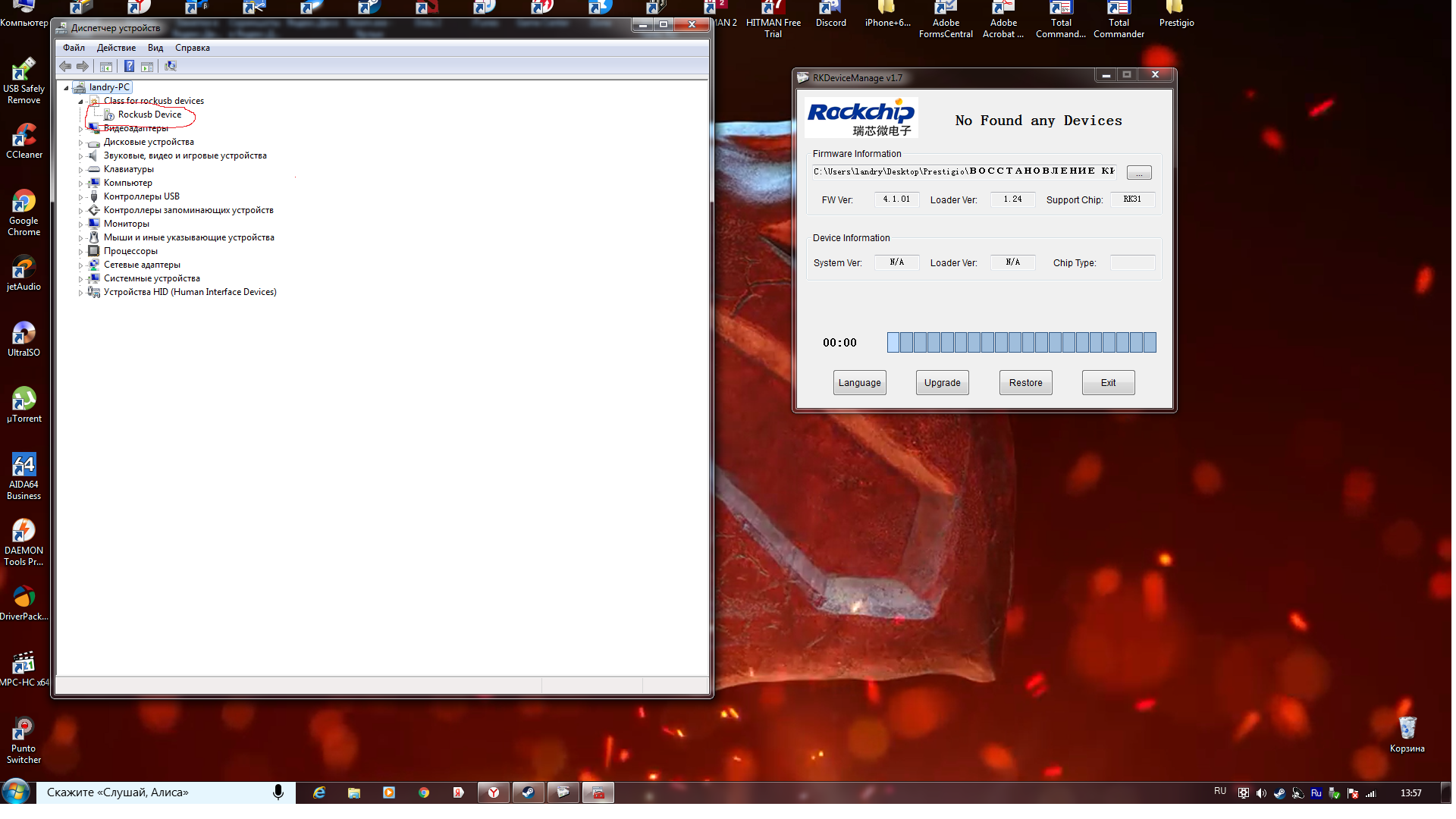 Привет всем не могу прошить Prestigio PMP5785C_Quad планшет определяется в диспетчере но в программе не видно его прошу помощи