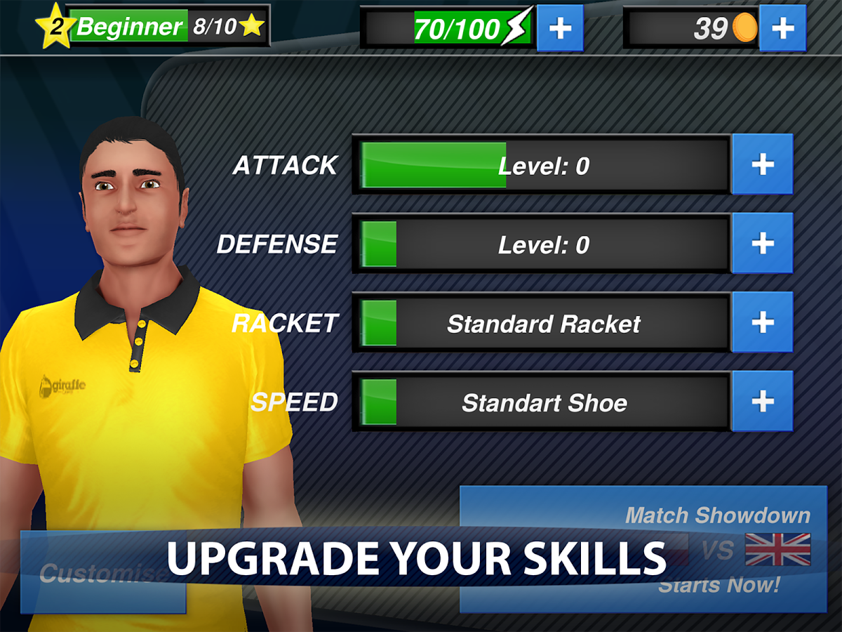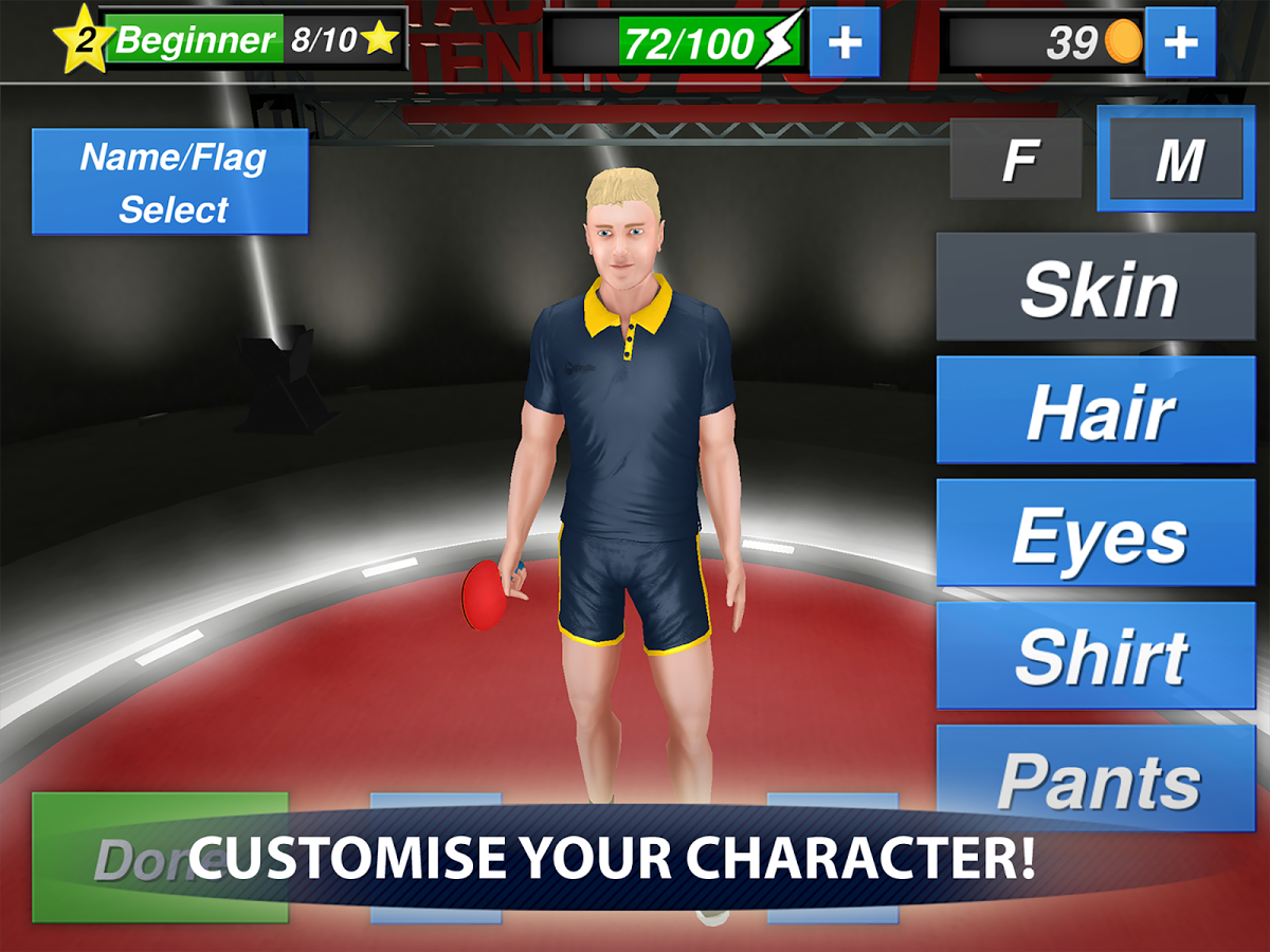 Table Tennis Champion – участвуйте в международном турнире по настольному теннису в этой игре на андроид. Выбирайте себе теннисиста из различных стран и сделайте его уникальным, выбрав ему пол, внешний вид и спортивную форму. Играйте в различные мини-игры, тем самым тренируя своего теннисиста перед турниром. Бросьте вызов сильнейшим игрокам в этой игре и управляйте своим теннисистом с помощью одного пальца. Поднимайтесь вверх по карьерной лестнице, выигрывая дружественные матчи, тем самым улучшая показатели и параметры своего героя. Приобретайте новое снаряжение для настольного тенниса и победите в главном турнире года, пройдя более 50 этапов игры.