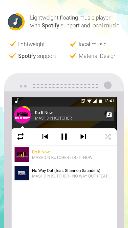 Ключевая особенность данного плеера — создание плавающей кнопки, в которую сворачивается запущенный проигрыватель. В таком виде кнопка-"пузырь" может свободно путешествовать с вами по любым приложениям.