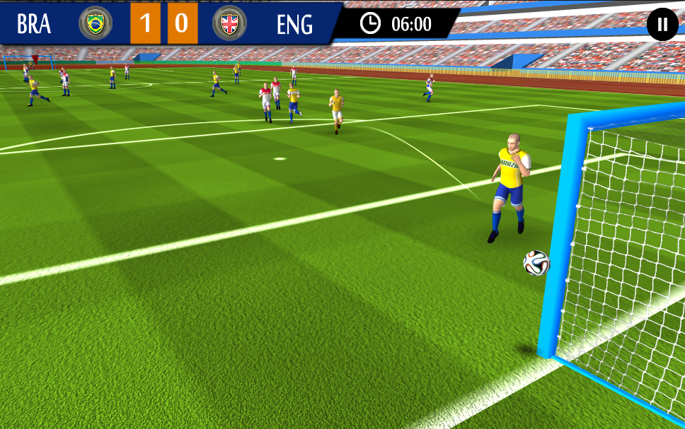 Real Football Game 2015 – футбольная игра, в которой вы возьмете под свой контроль любимую команду футболистов и приведете ее к победе. В этой игре вы сможете почувствовать себя тренером, которому выпадет непростая задача привести свою команду к победе на главном чемпионате мира по футболу. Управляйте сразу несколькими игроками и делайте мастерские пасы от одного игрока к другому, обманывая защитников противника и забивая голы в их ворота. Примите свое участие в товарищеских матчах и выходите победителем в них, поднимаясь все выше в таблице лидеров и стремясь к долгожданной победе. Игра порадует вас разнообразными командами на выбор, несколькими режимами игры и динамичным игровым процессом.