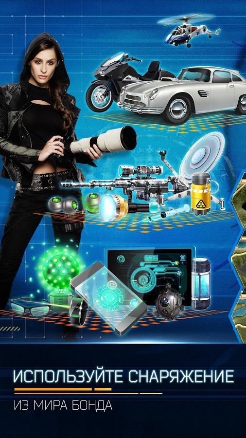 Cоблазняйте прекрасных союзников, владейте роскошными автомобилями и убивайте злодеев, проходите миссии вместе c Джеймсом Бондом и другими секретными агентами по всему миру. Улучшайте свое агентство, чтобы взять на себя роль M как главы штаба МИ-6 в Лондоне и спасти мир от гибели.