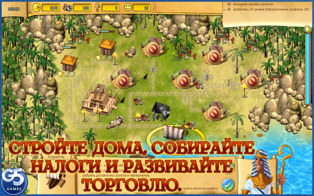 Долгая война истощила прекрасное Египетское царство. Отступив, жадные захватчики оставили за собой хаос и руины вместо некогда великой империи. Станьте преданным советником Фараона, помогите ему возродить мир и достаток в величественных городах Египта. Сооружайте дома и изумительные дворцы,собирайте налоги и материалы, развивайте производство и торговлю, а также сражайтесь с крокодилами и коварными кобрами. Удастся ли вам вернуть Египет в дни его славы?