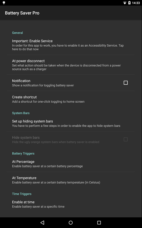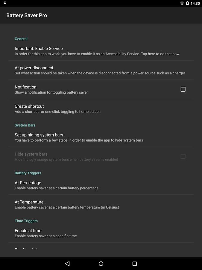 Это небольшое приложение создано для того, чтобы работа с режимом энергосбережения в Android Lollopop стала проще и удобнее.