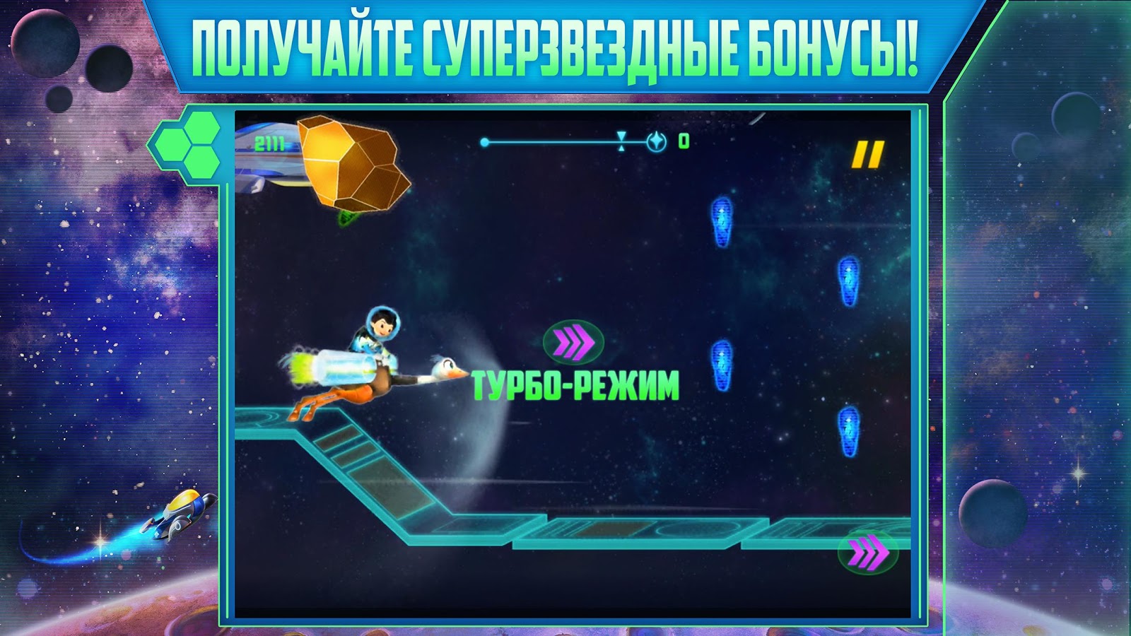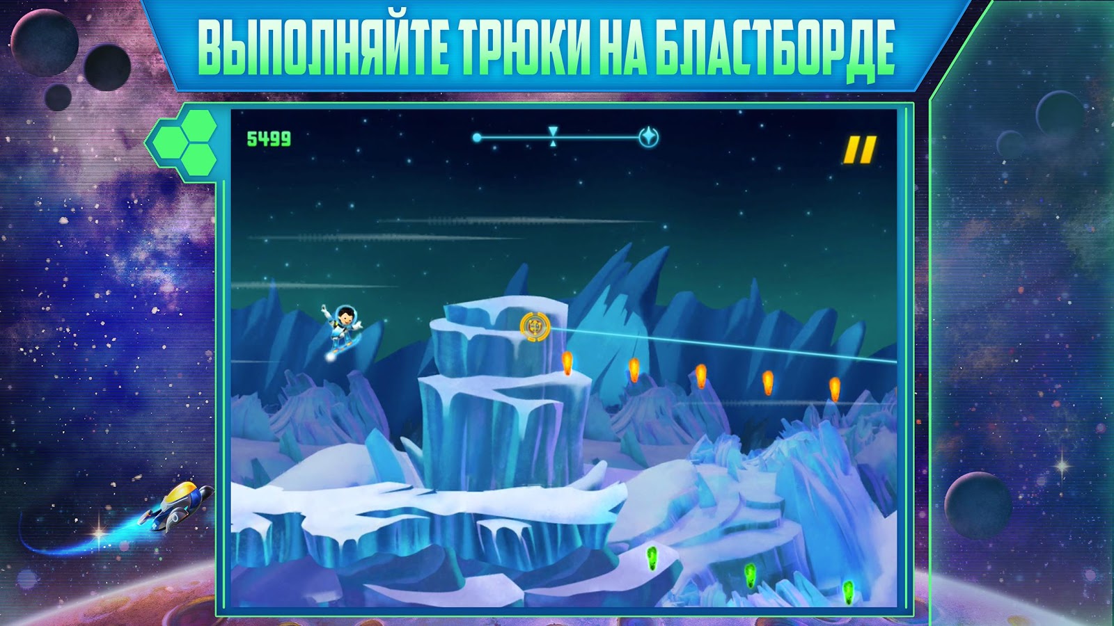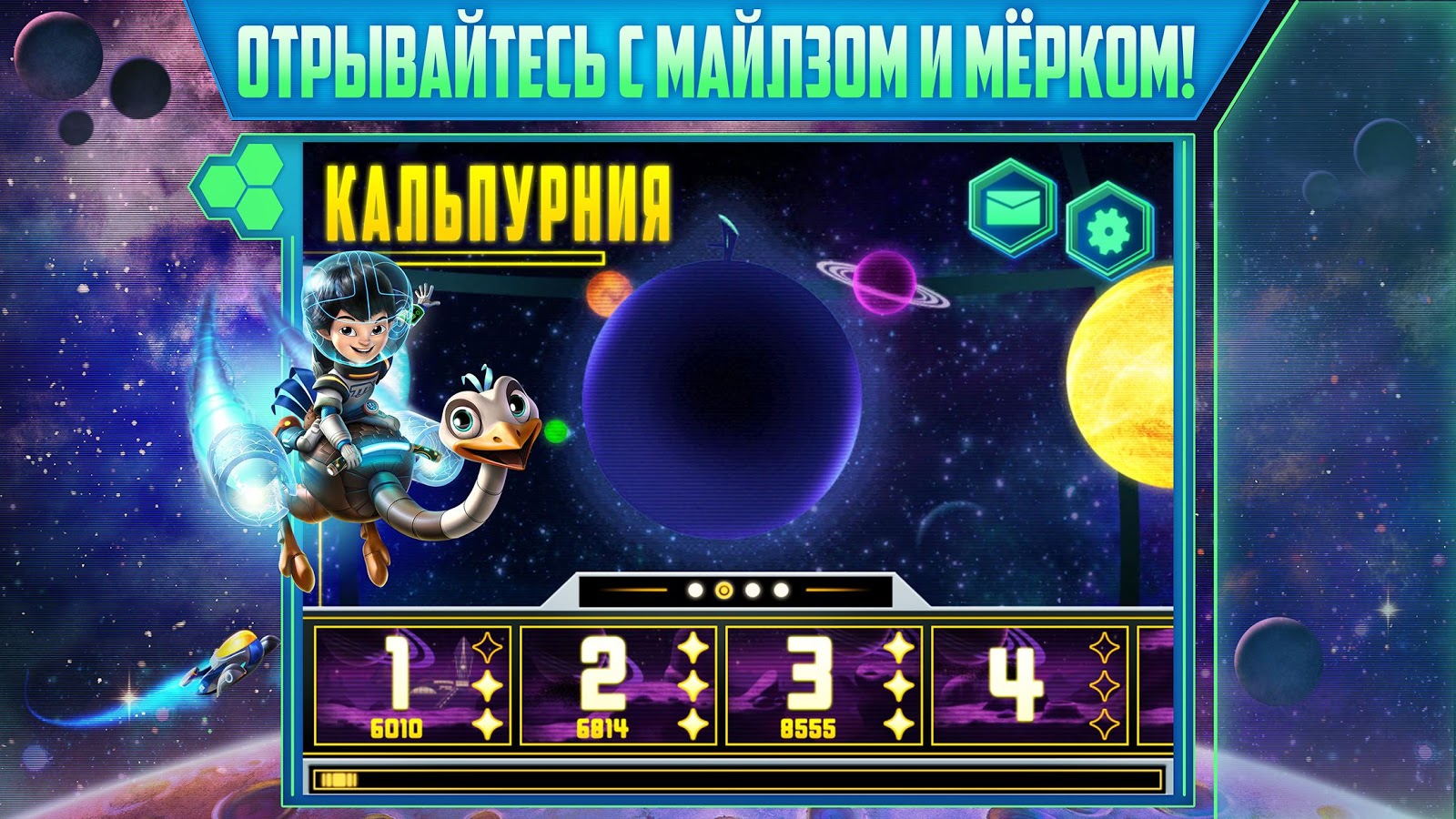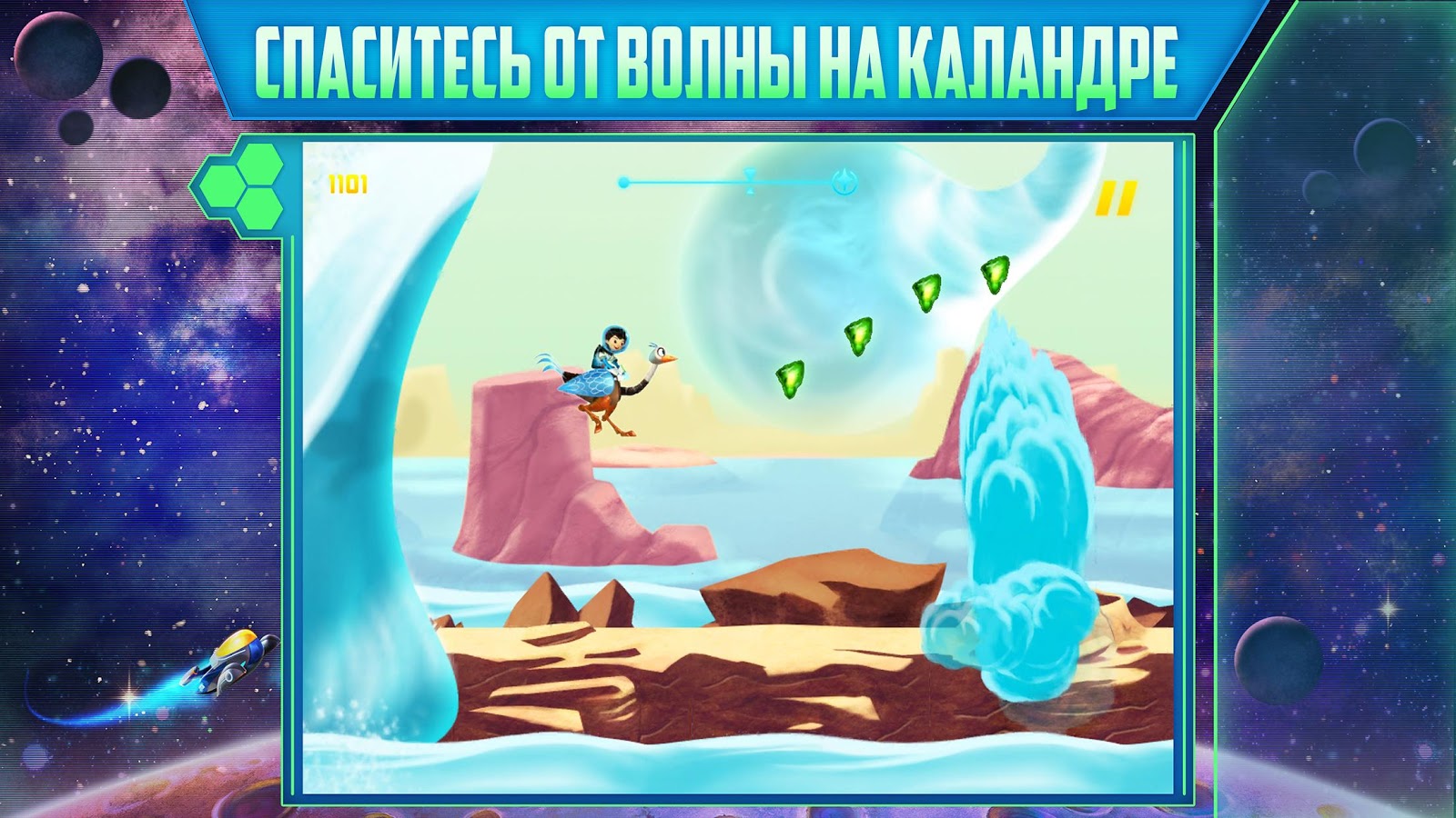 Приготовьтесь отправиться в космос навстречу невероятным приключениям в компании Майлза Каллисто и его лучшего друга - робострауса по имени Мёрк – героев сериала «Майлз с другой планеты» из блока познавательных передач Disney «Узнавайка»! Вы будете участвовать в спасательных операциях вместе с Майлзом, спасаться от огромных волн и Фликоракса и уворачиваться от астероидов. Собирайте редкие космические камни и не забудьте включить турбо-ускоритель, когда будете участвовать в суперзвездной гонке!