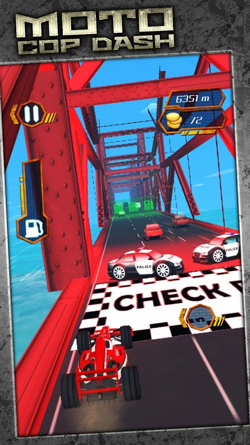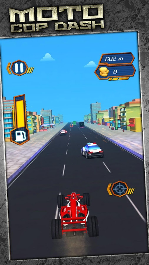 Moto Cop Dash – аркадные гонки на андроид, где вам предстоит управлять гоночной машиной. Гоняйте на огромной скорости по оживленным трассам и обходите все машины, избегая столкновения с ними. Из-за нелегальных гонок по городским улицам и трассам вам не избежать полицейских погонь. Так что приготовьтесь к безумным скоростям и нарушению правил дорожного движения. Давите педаль газа в пол и гоняйте по дорогам, передвигаясь в бесконечном потоке машин, пытаясь оторваться от преследования. Также настойчивые полицейские могут перекрыть вам дорогу, если такое случится - взрывайте полицейские машины с помощью своего оружия.