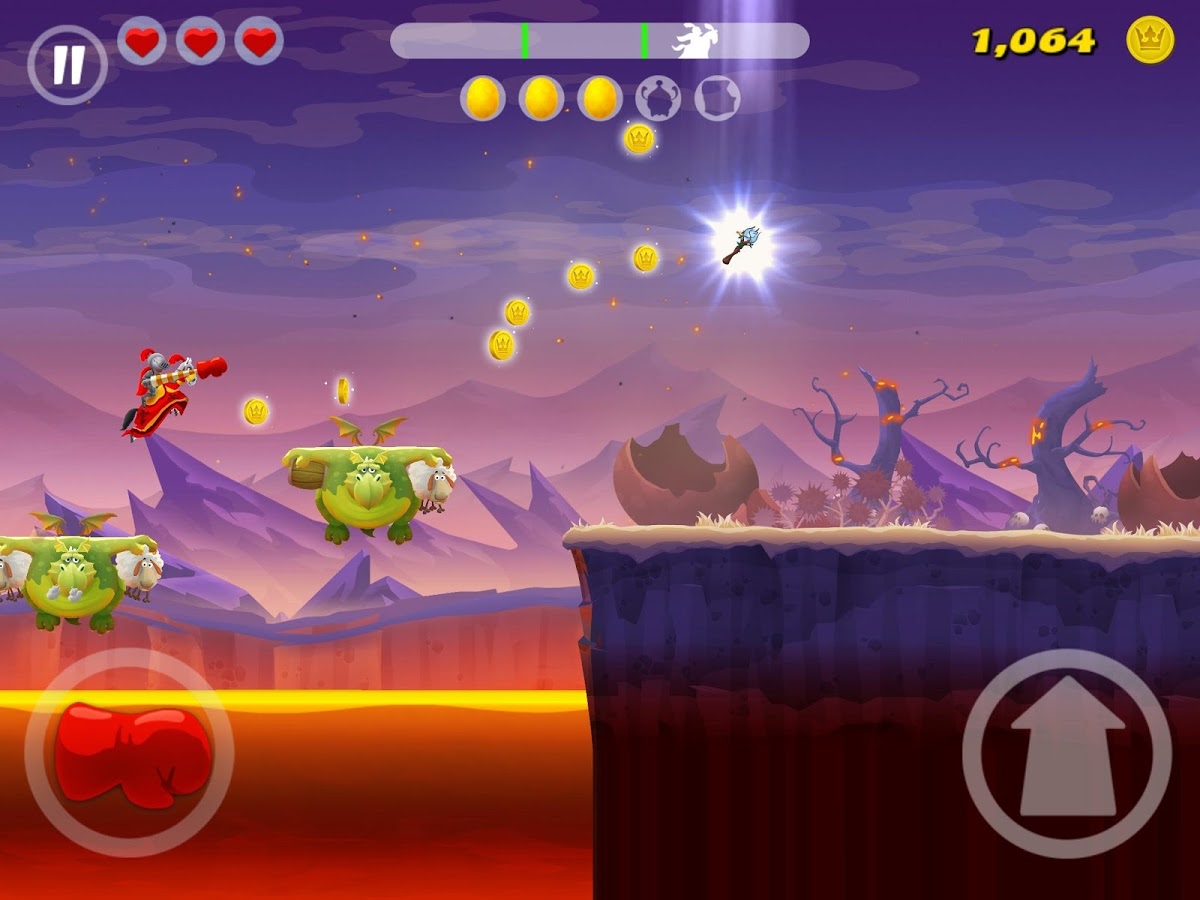 SirVival – платформер на андроид, в котором вам предстоит управлять рыцарем, которому предстоит спасти принцессу. Злой дракон похитил принцессу и утащил ее в далекое царство. Вашей задачей будет взять под свой контроль рыцаря, на которого возложена опасная миссия спасти принцессу, и провести его по всем мирам, сразившись с врагами. Начните свое путешествие прямо сейчас и скачите на своем коне навстречу невзгодам и опасностям. С помощью огромного копья сбивайте всех врагов, вставших у вас на пути, и подпрыгивайте на специальном батуте, чтобы преодолеть опасные шипы. По пути собирайте бонусы и достижения, которые помогут вам сразиться с драконом, которого не так легко будет победить. Эта игра порадует вас разнообразными локациями, многочисленными врагами и невероятными преградами.