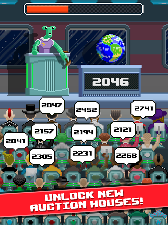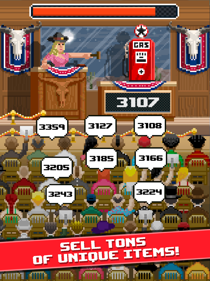 Auctioneer - игра, которую можно отнести к просто идеальным тайм-киллерам. Не секрет, что большая часть игр данного жанра очень низкого качества: это относится как исполнению игры, так и к непосредственно геймплею. Но Auctioneer явно не из их числа. В целом игровая механика Auctioneer для Андроид представляет из себя некий микс между тач-аркадой и кликкером, что же здесь ничего нового, да в визуальном стиле разработчики тоже не оказались оригинальными, выбрав популярный ретро -стиль. Но вот во всем остальном игра выше всяких похвал, на этот раз вам не придется разводить коров или овец, уничтожать сотни монстров или чудовищ, вам выпал случай попробовать свои силы в роли владельца аукциона. Продавайте за максимальную цену сотни редких и дорогущих предметов, на заработанные деньги улучшайте свои навыки и покупайте новые здания.