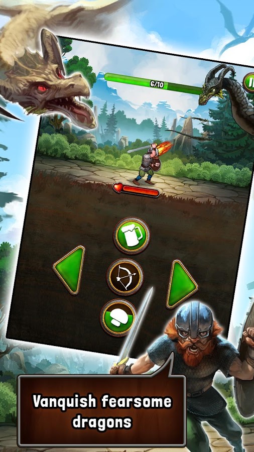 Mighty Viking – игра на андроид, где вы попадете в мир, в котором живут ужасные монстры, варвары и драконы. В этой игре вы возьмете в руки острый меч и топор, и в качестве викинга будете отбиваться от орд врагов, наступающих на вас со всех сторон. Помогите отважному герою из северных заснеженных земель победить всех врагов и огромного дракона. С помощью различных бонусов и усилений помогайте своему герою залечить раны, нанесенные врагами, и одолеть могущественных противников. Проверьте на деле свою реакцию и докажите всем, что вы лучший воин, которому нипочем любые невзгоды.