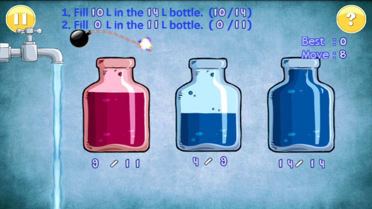WaterCapacity - очень увлекательная игра, которая подойдет как взрослым, так и детям. Эта игра не направлена на убийство времени, она создана для того, чтобы вы провели время с пользой. Заставьте ваше серое вещество работать на полную. Принцип игры прост: вам дают задание наполнить бутылку, но это не так просто, как кажется. Ведь наполнить нужно определенную бутылку и только определенным количеством воды. С каждым новым уровнем задания будут становиться все сложнее. Предметов, которые вам нужно будет использовать, будет все больше. Данная игра поможет вам не просто скоротать время, но и хорошенько развить ваши логические способности.