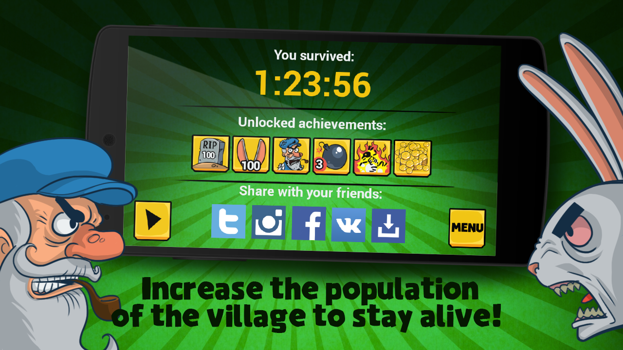 Не знаю каких грибов объелись лесные кролики, но ушастые возомнили, что они могут так просто выйти из леса и отправиться завоёвывать небольшой городишко. На пути к городу есть мостик, через который и идут толпы зайцев, но им путь преградил отважный престарелый защитник, возможно это дед Мазай решил исправить свою давнюю ошибку, а может просто зайчатинки захотелось отведать, но это уже не так-то и важно. Главное что у него внушительный арсенал для отстрела косых, и мы им непременно воспользуемся. Мочим зайцев, собираем монеты, прокачиваем оружие, опять мочим зайцев, едим пельмешки с дичью, опять прокачиваем пушку, шьём шапки, и так пока ушастых полностью не перебьём.