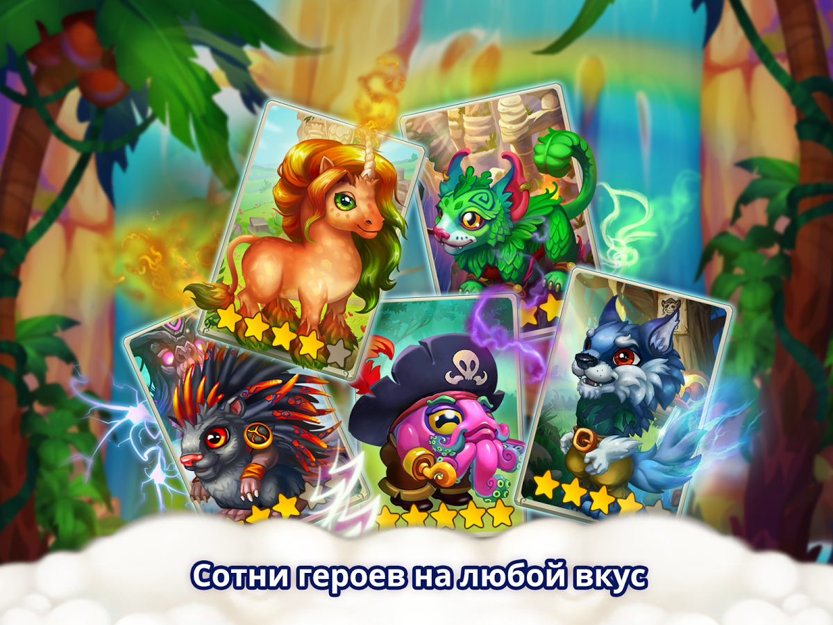 - Огромный простор для развития. Повышай уровень своих персонажей и улучшай здания, чтобы раскрыть все способности существ и собрать непобедимую команду.