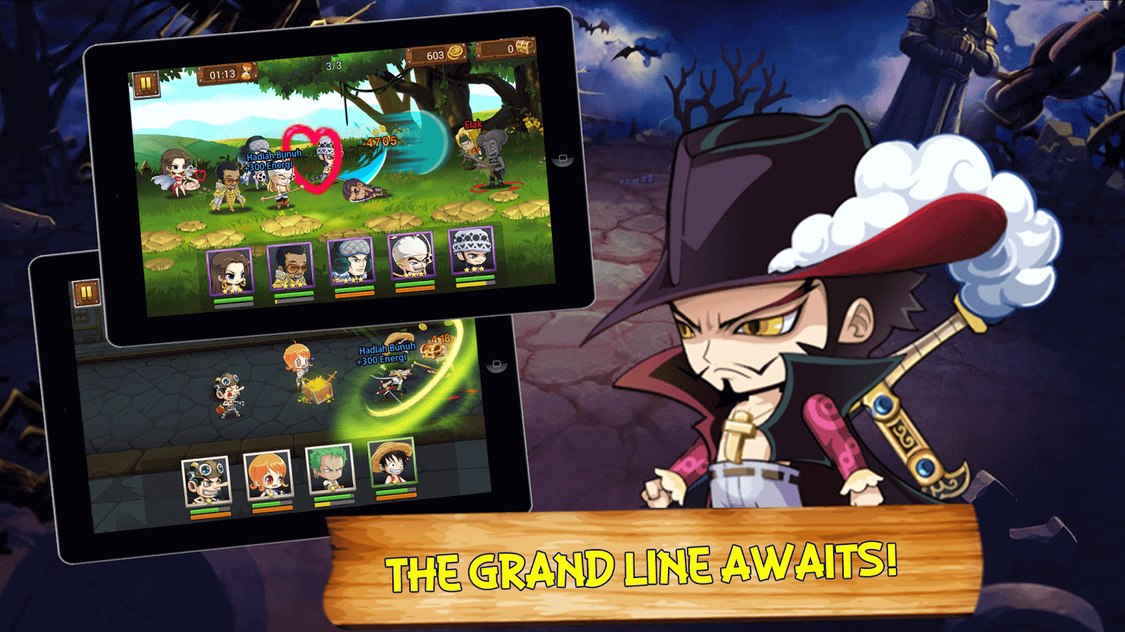 Strong World D. – RPG на андроид, где вам предстоит стать пиратом и путешествовать по различным морям в поисках сокровищ. Соберите свою самую отважную команду и вступайте в жестокие бои на арене с другими пиратами. Каждый член вашего экипажа обладает своими уникальными навыками и способностями, которые вы сможете грамотно применять в сражениях, добиваясь наилучшего результата. Исследуйте морские просторы и собирайте оружие, снаряжение и полезные предметы для ваших героев. Бросайте вызов сильным боссам, которые стерегут сокровища и получайте ценную награду, побеждая их. Игра вас порадует разнообразными персонажами, которых в игре более 40, и яркими сражениями с другими игроками.