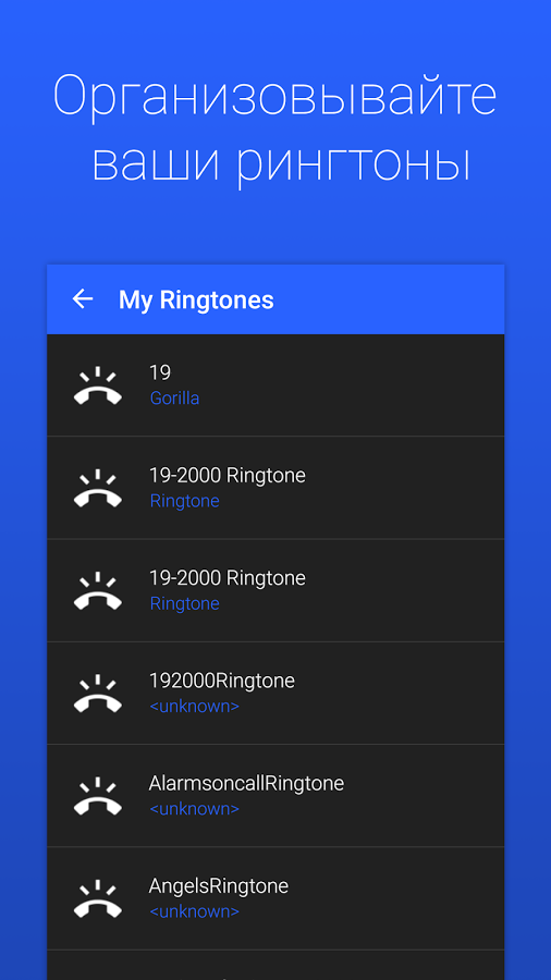 Приложение работает со всеми популярными форматами: MP3, M4A, AAC, 3GP и др.