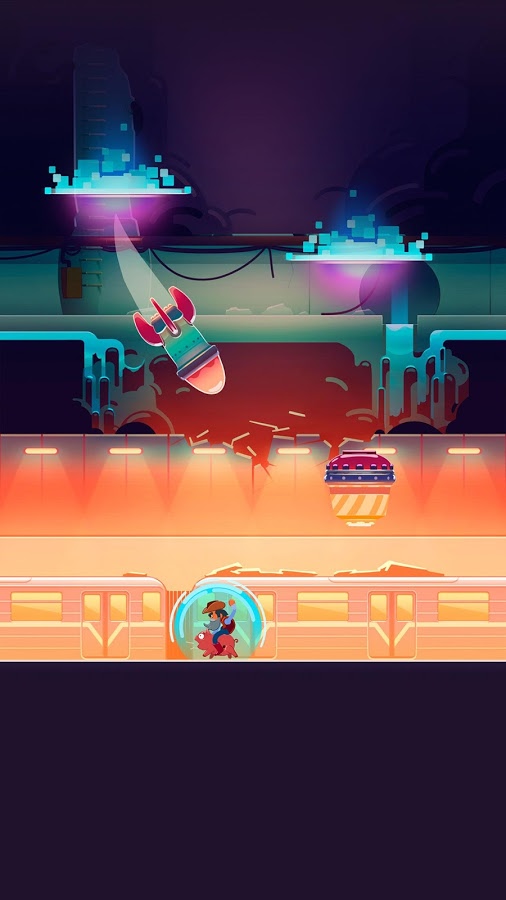 Город атакован! Повсюду открываются порталы, а земля уходит из-под ног. Избегайте препятствий и подымайте щиты, чтобы выжить! Собирайте купюры и открывайте новых персонажей. Нажмите на экран, чтобы ускориться.
