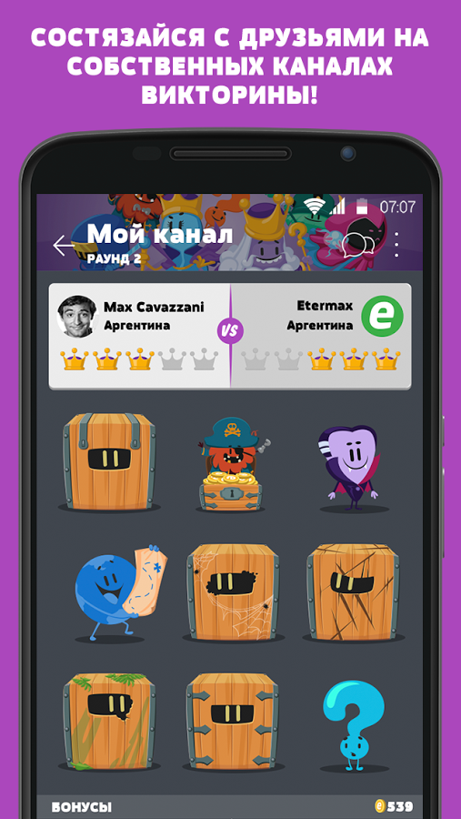Исследуй новое королевство Trivia Crack и вызывай на состязание друзей, семью и товарищей на каналах викторины, посвещённых твоим любимым темам.