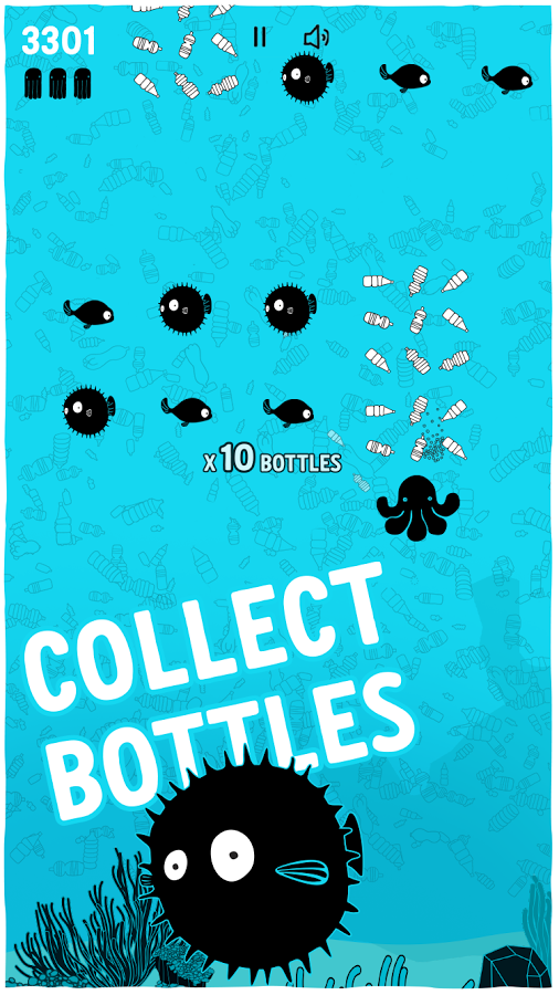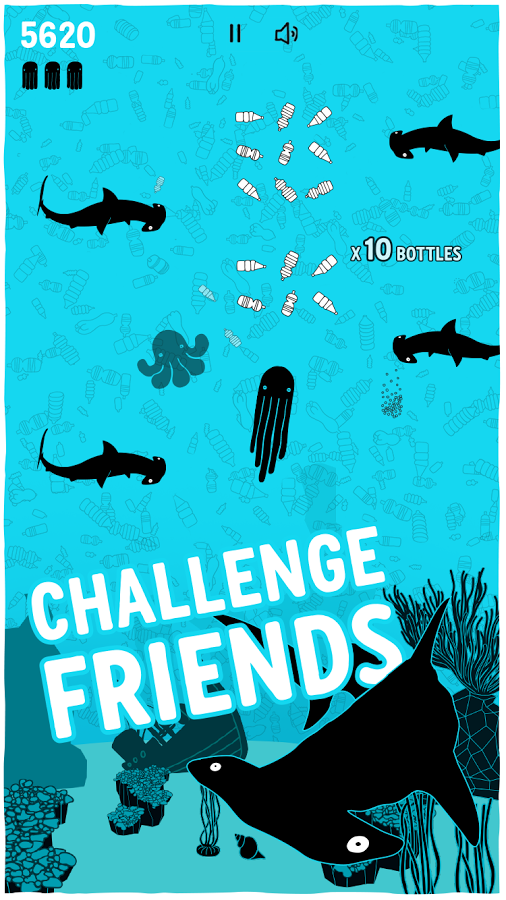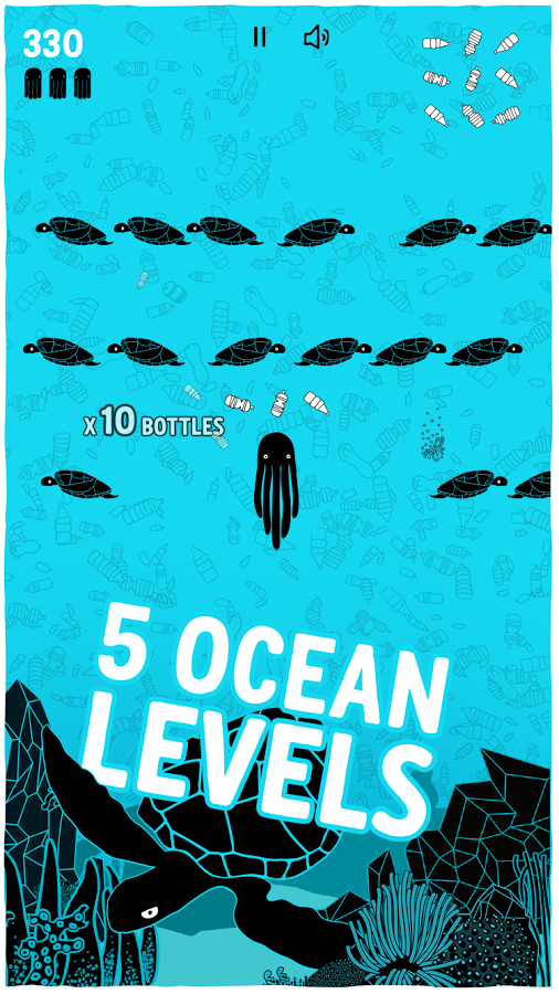 Battle for Big Blue – увлекательная игра на андроид, которая на деле показывает всем, как сильно загрязнены океаны на нашей планете. В этой игре вам предстоит управлять осьминогом, который бороздит просторы пяти океанов и собирает пластиковые бутылки. Возьмите под свой контроль осьминога и соберите как можно больше бутылок, очищая океаны от загрязнений. На вашем пути встретятся различные рыбы, столкновение с которыми вам предстоит избегать, используя для этого свою отличную реакцию. Путешествуйте по различным уровням, начиная с Атлантического океана и заканчивая Тихим. Соревнуйтесь со своими друзьями, бросая им вызов в социальных сетях Facebook.