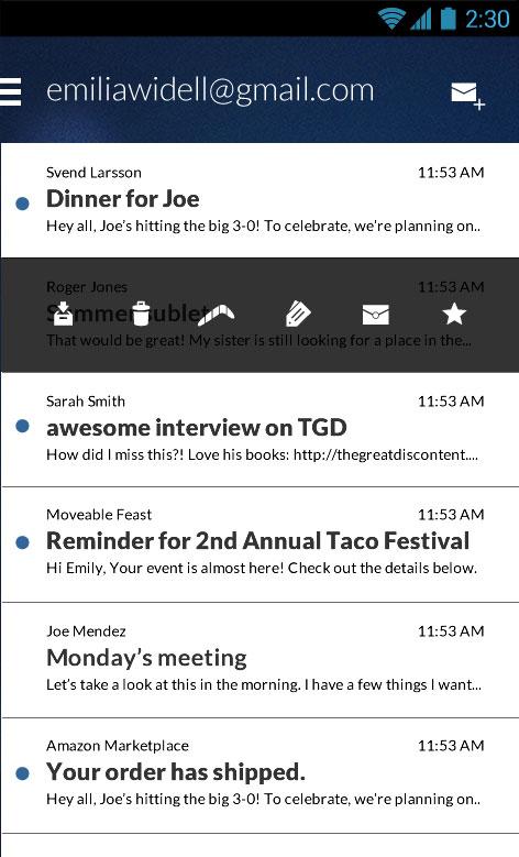 Boomerang – хороший почтовый клиент для андроид, который является расширением десктопной версии Gmail. Boomerang поддерживает различные темы оформления для почты, весьма функционален и содержит уникальную особенность повторного получения письма через заданное время, день, неделю, месяц и т.д. Благодаря такой возможности вы не пропустите и не упустите важные дела или моменты жизни! Приятного пользования!