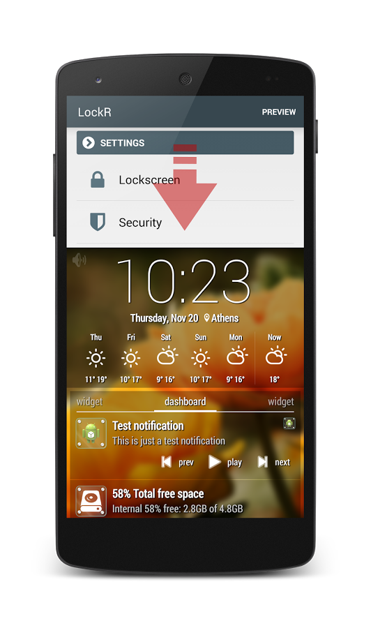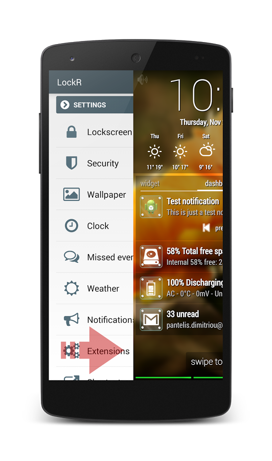 Качественный локскрин должен быть красивым или функциональным? В идеале, наверное, и то, и другое. Как, например, LockR. Он работает с любыми лаунчерами и обладает отличным набором настроек. Предусмотрена разблокировка по отпечатку пальца, графическому ключу или паролю.