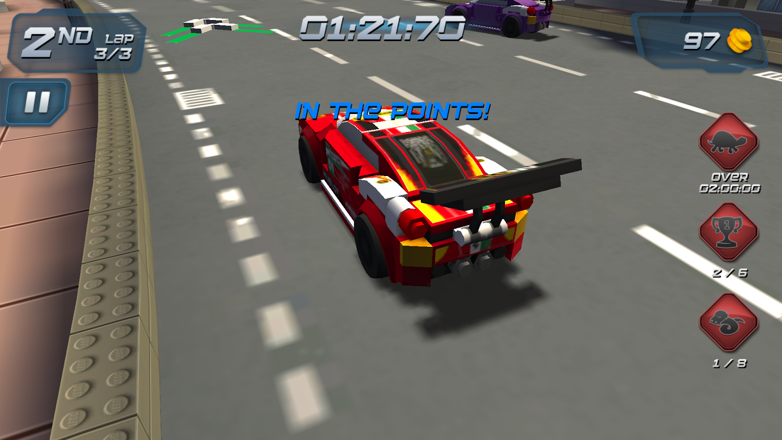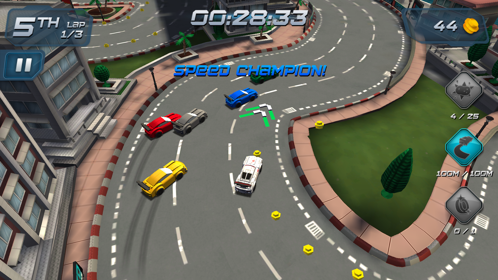 LEGO Speed Champions – примите свое участие в захватывающих гонках, управляя скоростными гоночными автомобилями. Выберите себе подходящий скоростной автомобиль и гоняйте по опасным трассам с опытными соперниками, приходя к финишу первым. Покажите все, на что вы способны, разгоняйте свой автомобиль до максимальной скорости, проезжая по зеленым стрелочкам, и мастерски обгоняя соперников. По пути собирайте золотые монетки и получайте возможность улучшить свой автомобиль. Опасайтесь столкновений с преградами и другими машинами, объезжайте масляные пятна на дороге, после которых вы сможете потерять контроль над своим авто. Приезжайте к финишу первым и разблокируйте новые трассы и увлекательные миссии.