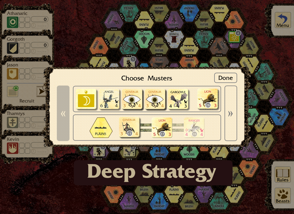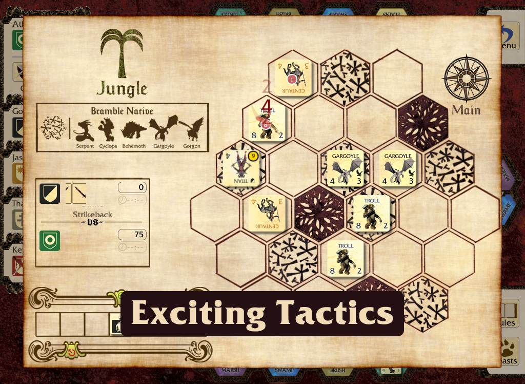 Titan HD – настольная игра на андроид, где вам предстоит бороться за господство в опасном мире. В этой игре вы будете управлять титаном, которому предстоит перемещаться в составе своего легиона по различным землям игрового поля, населенным орками, гоблинами и другими мифическими существами. Перемещайте свой легион как можно глубже в опасный мир и сражайтесь там с врагами и другими игроками, которых может быть от 2 до 6 в одной игре. Играйте против умных ИИ или сражайтесь с реальными игроками со всего мира. Победите в этом нелегком сражении и докажите всем, что вы лучший стратег и воин.