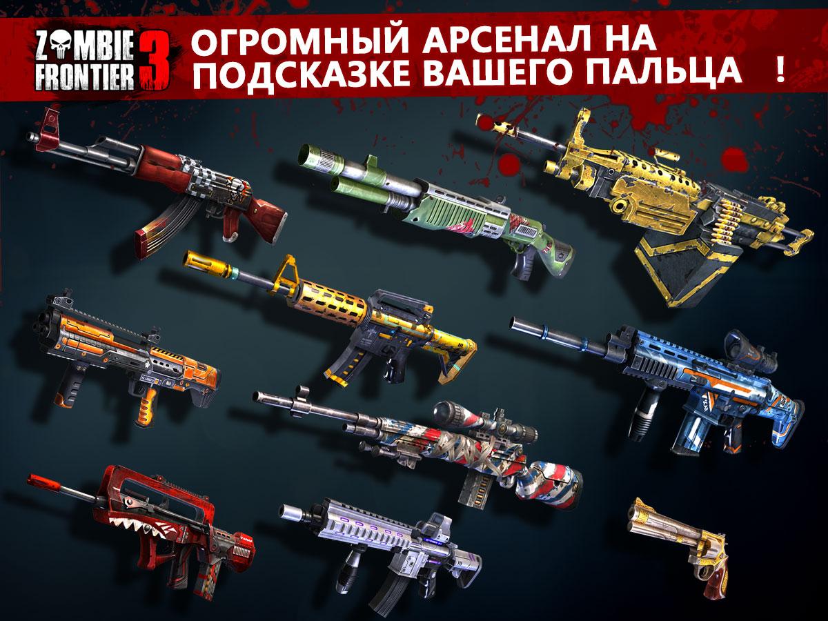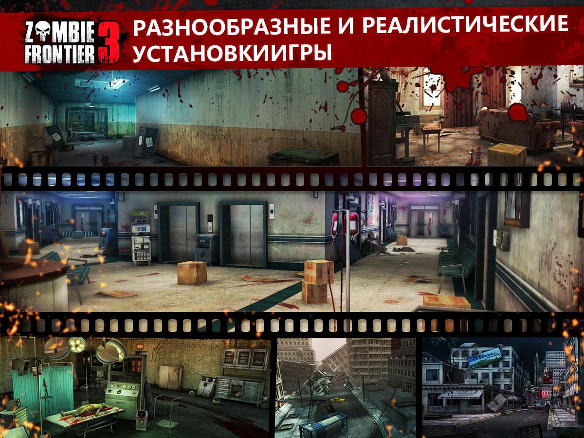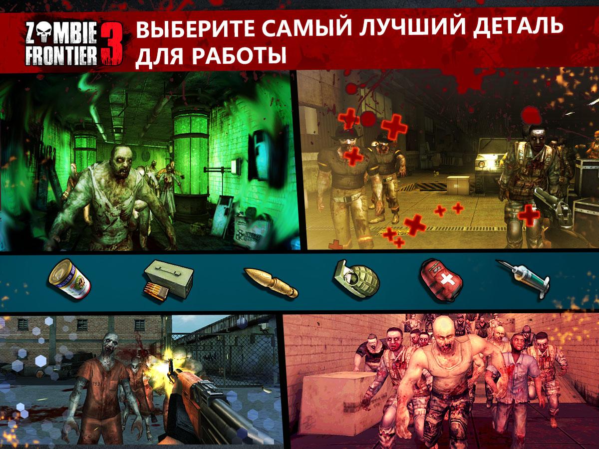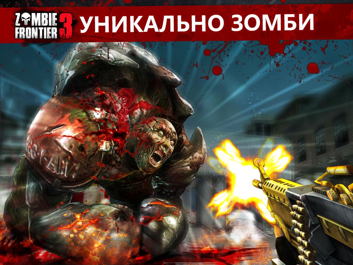 Zombie Frontier 3 – продолжение захватывающей игры на андроид в жанре тир. В этой игре вы окажетесь в мире, где бушует зомби вирус, который превращает обычных людей в кровожадных монстров. Вашей задачей в этой игре будет постараться выжить и найти лекарство от вируса. Исследуйте огромный мегаполис и отстреливайтесь от зомби с помощью различного оружия: штурмовых винтовок, короткоствольного оружия и пистолетов, а также занимайте удобные позиции и стреляйте из снайперской винтовки, метясь прямо голову зомби. Исследуйте огромный открытый мир игры, разделенный на четыре зоны, и выполняйте поставленные миссии. Впереди вас ждут толпы зомби, четыре трудно-победимых босса и более 40 различных достижений.