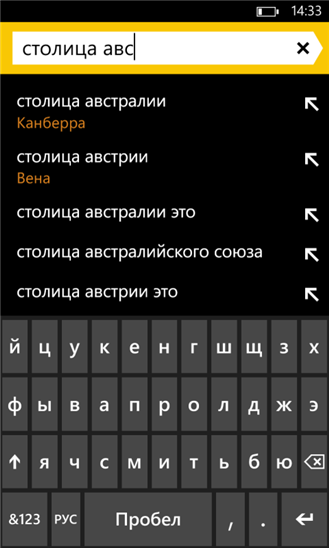 Для популярных запросов вам мгновенно будут предоставлены заранее подготовленные ответы: новости или прогнозо погоды в вашем городе, карта банкоматов поблизости, расписание поездов и т.д. Некоторые запросы, вроде курса валют или кода города, можно будет получить мгновенно, даже не закончив набор запроса.