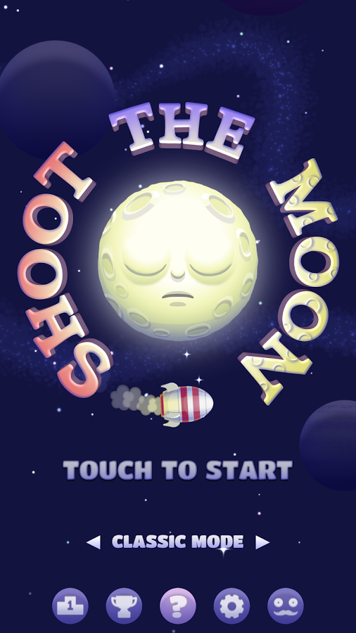 Shoot The Moon - увлекательная тач-аркада, изначально вышедшая на платформе iOS и буквально за считанные дни завоевавшая огромную популярность. Спросите, что же такого необычного в данной игре? На самом деле причин несколько. Первое - это довольно оригинальный сюжет: по неизвестным причинам естественный спутник Земли разозлился и решил отомстить обидчикам, то есть человечеству, довольно неожиданным способом... Луна начала петь. Конечно же жить в таком шуме невозможно и с этим нужно было бороться, так что именно на вас ложится обязанность унять небесное тело. А как это можно сделать? Конечно же при помощи ракет. Ко второму моменту можно отнести простой и понятный геймплей, запуская ракеты постарайтесь попасть в Луну и тем самым хоть на время прекратить пение. Можно отметить и приятное визуальное исполнение, а также общую атмосферу.