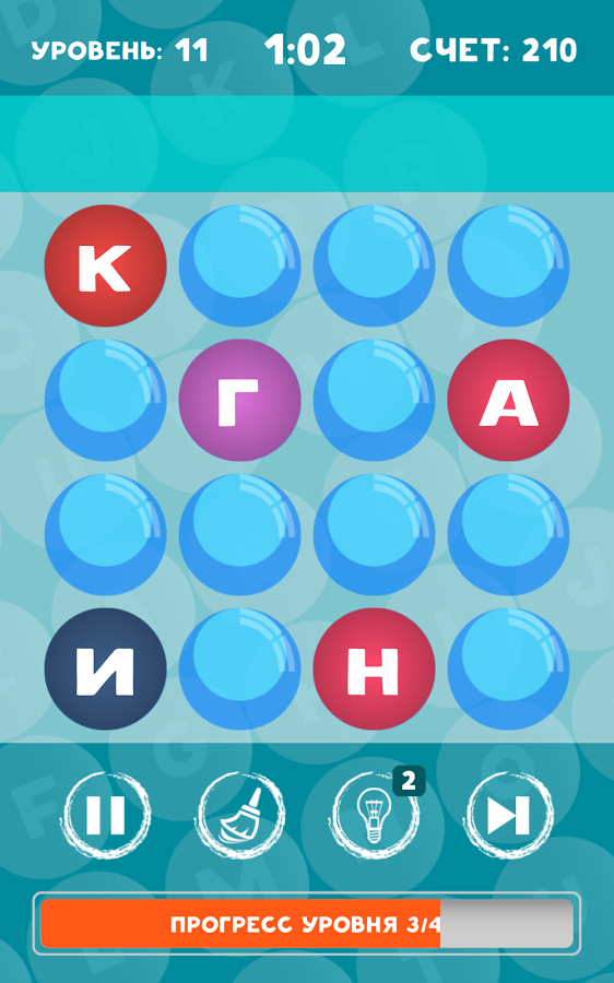 Words Constructor” – интеллектуальная словесная игра, в которой необходимо составить из представленных на поле букв слово.