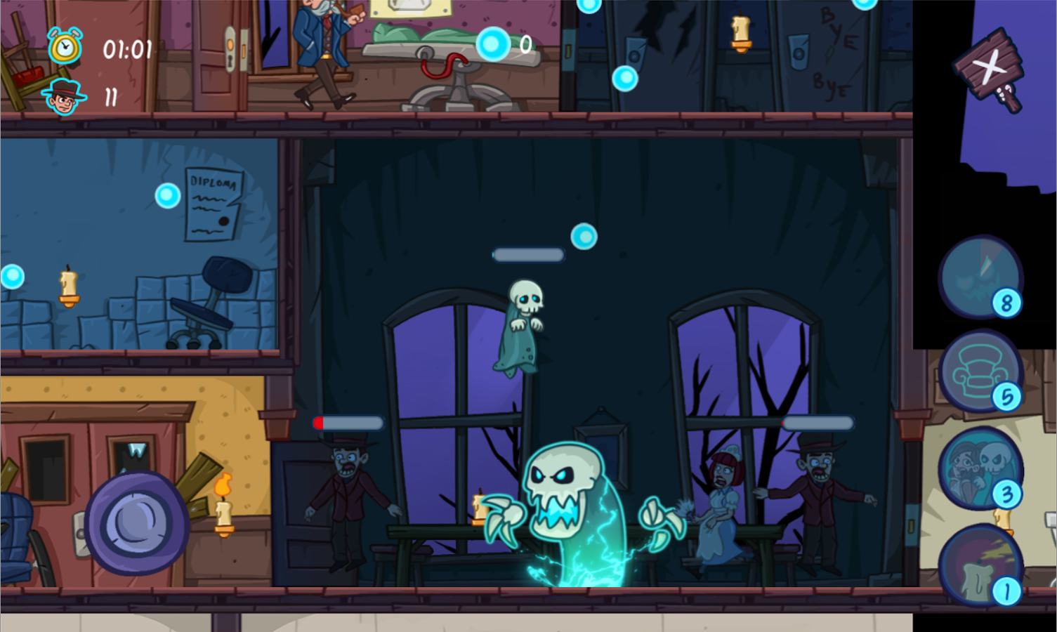 BoOooo – увлекательная игра на андроид, в которой вы будете помогать застенчивому приведению Бу пугать людей. Наше приведение довольно мирное существо, он любит посидеть с кружечкой чая возле камина, почитывая свою любимую газету. Но однажды в его дом пришли люди, которые решили здесь поселиться, тем самым нарушив покой нашего Бу. Приведению нbчего больше не оставалось, как отложить свою газету и заняться поистине увлекательным делом – пугать людей. Помогите Бу пугать различных жителей дома, перемещаясь из одной комнаты в другую, при этом ища новые интересные способы напугать жителей, для того чтобы они покинули дом раз и навсегда.