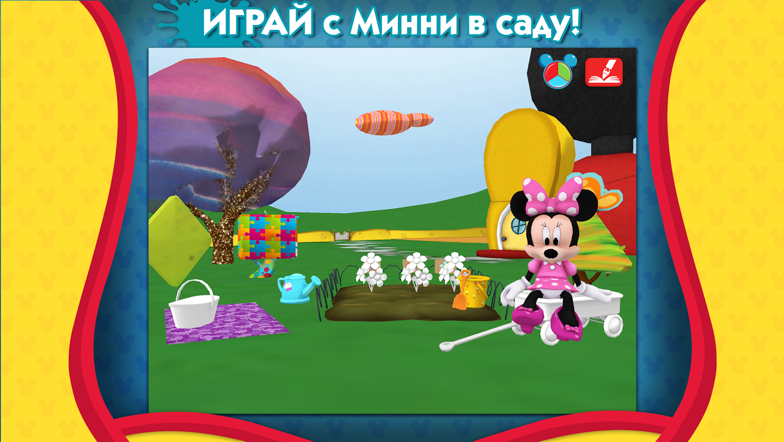 Mickey's Paint and Play - волшебная анимированная книга-раскраска, благодаря которой ты можешь создать целый мир. Раскрашивать можно что угодно! Наблюдай, как оживают герои, и исследуй окрестности Клуба Микки Мауса.