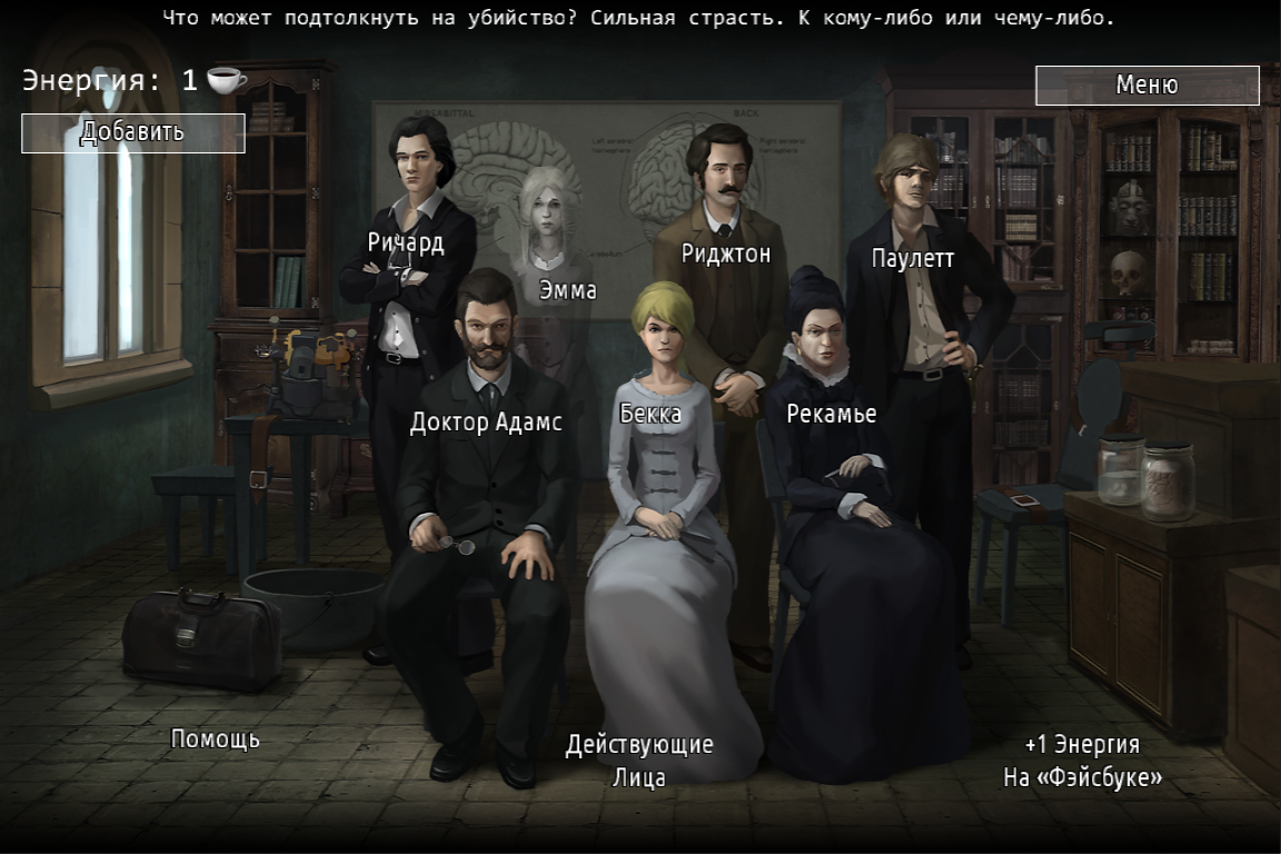Недавно вы получили неожиданное приглашение. Фредерик Адамс, доктор психатрии, с которым вы свели знакомство несколько лет назад, пригласил вас посмотреть на удивительный случай душевного расстройства. Поздно вечером вы прибыли в больницу. Однако утром та самая пациентка была обнаружена мертвой...