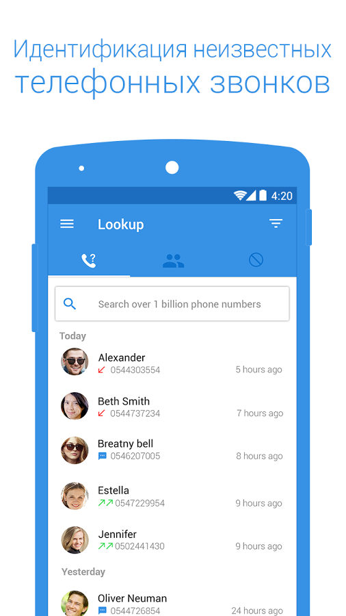 Данное приложение предоставляет пользователю довольно нестандартную функциональность: оно поможет идентифицировать звонки с неизвестных номеров, заблокировать нежелательные вызовы, что поможет бороться со спамом, но куда интереснее выглядит синхронизация вашей телефонной книги с контактами в социальных сетях. Приложением поддерживаются Facebook, LinkedIn и Вконтакте. Оттуда программа собирает сведения о номерах телефонов, фотографиях и днях рождения ваших друзей, причем программа не просто будет знать нужные даты, но и вовремя уведомит вас и предложит варианты поздравительной открытки.