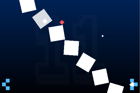 Игра проста как квадрат. Есть движущаяся лестница. Есть ваш красный куб. Вращая куб влево и вправо нужно как можно дольше продержаться на лестнице. Очки начисляются за каждый отскок кубика. Чем больше очков набрали, тем быстрее движется лестница.