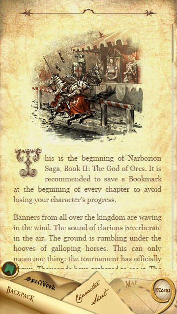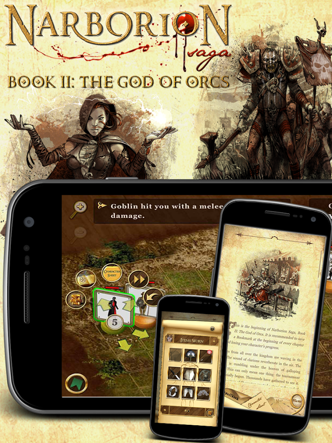Narborion 2: The God of Orcs – интерактивная игра с интересными пошаговыми действиями и захватывающим сюжетом. В этой игре ваш герой отправляется в опасное путешествие, чтобы раскрыть заговор орков и отыскать их армию. Эта игра порадует вас динамичным сюжетом где вы будет пробираться по лесным чащам, исследовать огромные крепости и в конечном итоге столкнетесь с боссом орков и сразитесь с ним. Вас ждут более 50 автономных боев, различные загадки, анаграммы, секретные коды и разнообразные мини-игры. По ходу игры вы будете развивать вашего героя, делая его более сильным и выносливым, а также изготавливать и продавать оружие и получать новые заклинания и эффекты.