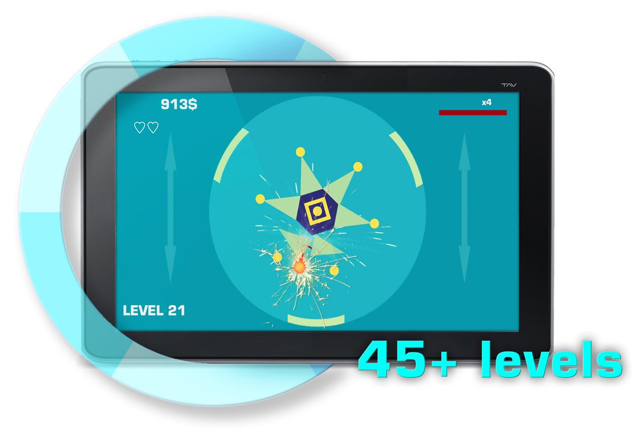 Arkanoid Circle – увлекательная игра в жанре арканоид с тремя движущимися платформами. Этот жанр знаком уже многим игрокам, но в таком формате игра представлена впервые. Вы попадете в круг, где по часовой стрелке движутся три платформы, об которые вам необходимо стукать шариком и разбивать различные предметы, находящиеся в центре круга. Игра порадует вас захватывающим игровым процессом, разнообразными фигурами и многочисленными уровнями. Разбивайте фигуры с помощью шарика и набирайте достаточное количество очков, чтобы посоревноваться с самыми лучшими игроками этой игры. Получите доступ к 11 различным бонусам и наслаждайтесь веселым саундтреком.