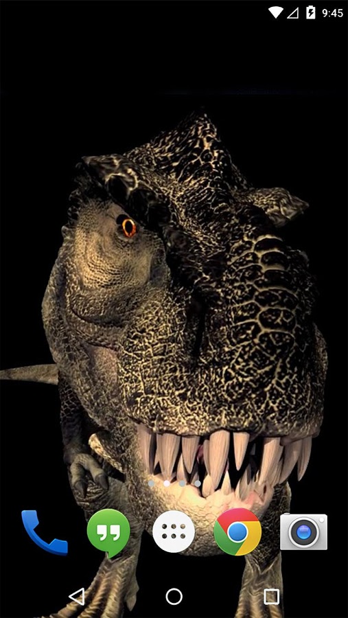 Настоящий динозавр в вашем устройстве. Установите и убедитесь сами, что динозавры - это страшно! На первый взгляд он будет очень спокойным и не будет совершать резких движений. Но стоит вам коснуться экрана, как эта машина смерти бросится прямо в камеру. И поверьте мне, это очень захватывающее зрелище. Вы можете выбирать: смотреть лишь за его милой мордашкой или за всем динозавром целиком. Эти обои разнообразят ваш рабочий стол и придадут ему интереса. Также они не слишком прожорливы к батарее, так как динозавр особо не двигается, пока его не тревожить. Испугайте родных и близких настоящим динозавром на экране вашего устройства.