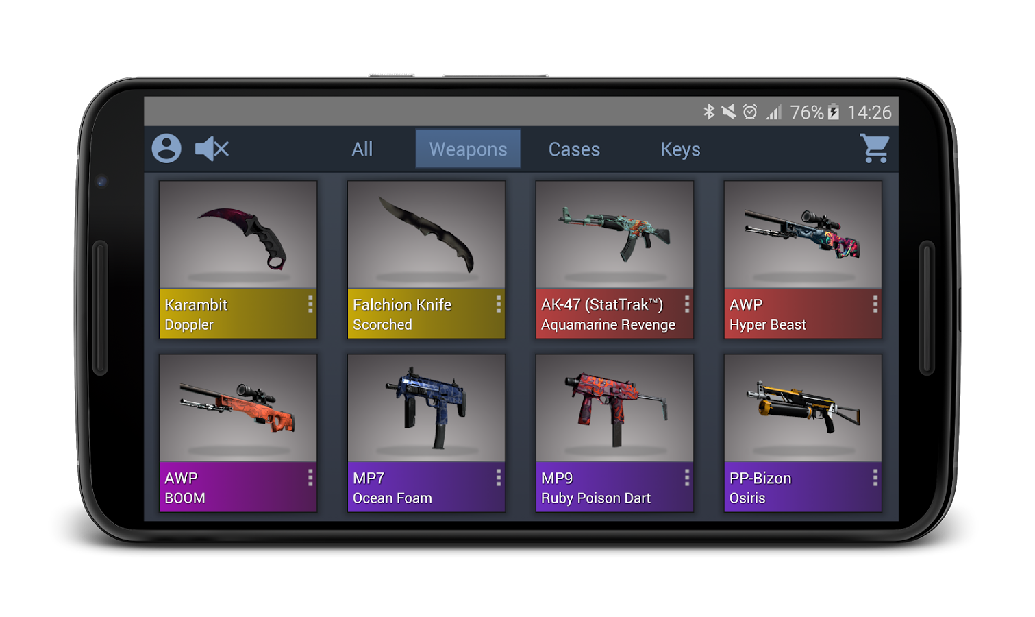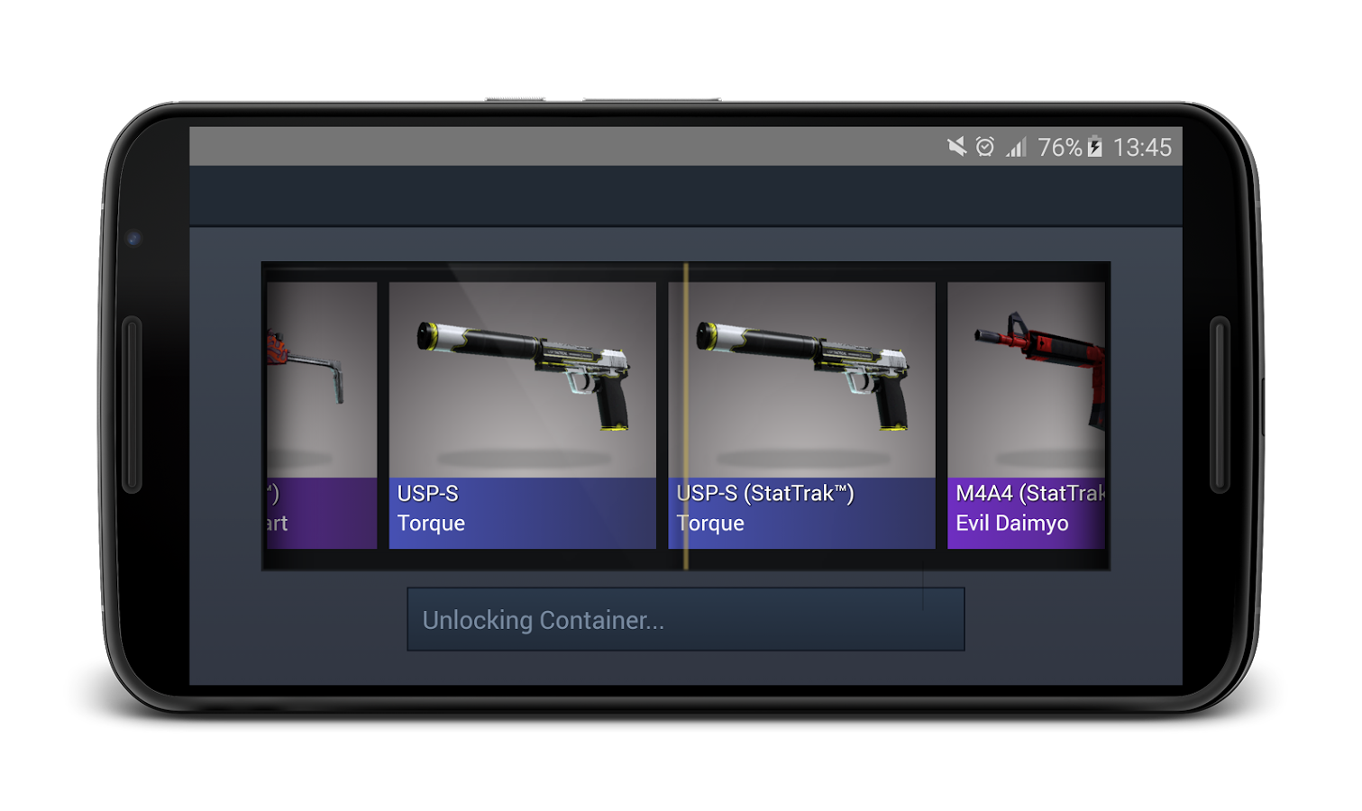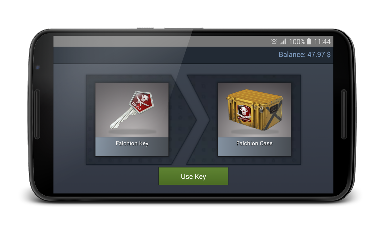 Симулятор торговли. Получай Скины оружия, открывая кейсы. Испытайте свою удачу,выполняй контракты, обменивай оружие и скины с друзьями по Bluetooth. Вначале вы получите 400 кредитов. Покупайте кейсы и ключи, чтобы получить как можно больше редких скинов. Продайте их, чтобы заработать больше кредитов, создавайте контракты на оружие или обменивайтесь с друзьями через Bluetooth!