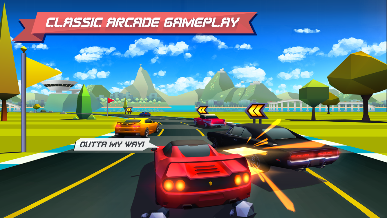 Horizon Chase - World Tour - превосходные аркадные гонки, идея которых взята из хитов конца 80-х и начала 90-х годов: Lotus Turbo Challenge, Top Gear (SNES), Rush, и других. Аркадный геймплей сильно похож на тот который был пару десятков лет назад. Даже графика повторяет схожий дизайн и атмосферу уровней, с поправкой на новые графические возможности современных девайсов. Игра будто переносит вас в эпоху 8-ми и 16-ти битных приставок. Передавая неповторимый стиль ретро в новой яркой обёртке. В игре представлены 16 автомобилей, 8 кубков и 73 города. Победите во всех заездах и станьте лучшими гонщиком.