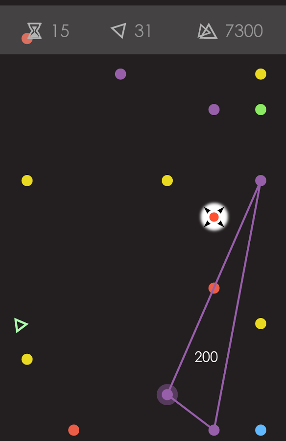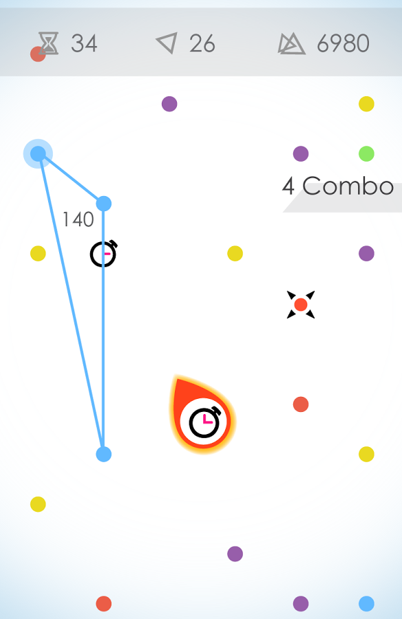 В Triangle 180 мы должны будем соединять три точки одинакового цвета, создавая треугольник. Делайте комбо, успевайте как можно быстрее за отведенное время, используйте бонусы для улучшения результата и старайтесь побить один из рекордов.