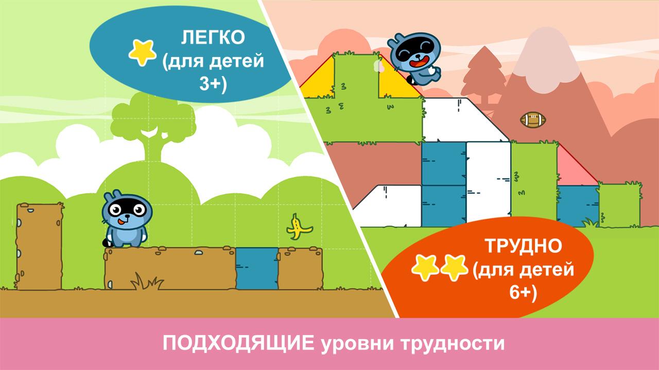 Приготовься к испытанию! ВЫБИРАЙ логические блоки и ПРОКЛАДЫВАЙ путь для Панго. Если Панго пересечет экран без падений, он получит предмет, который сможет отдать другу.