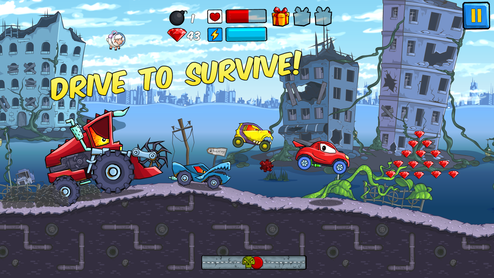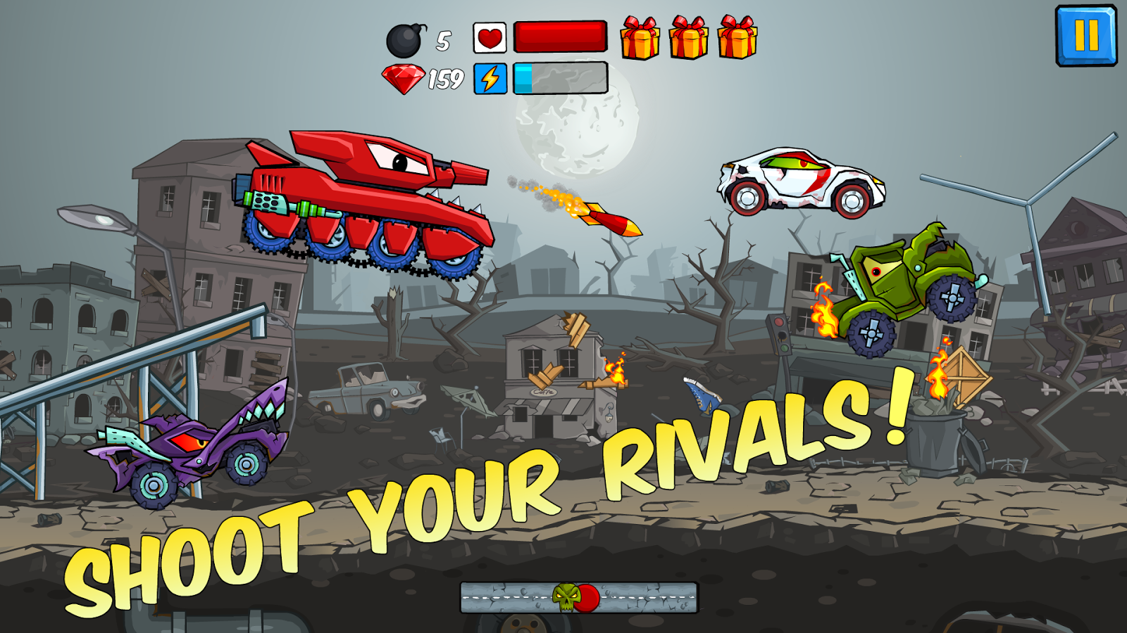 Сделай всё, чтобы выжить и разбить остальные машины в самой экстремальной гонке в твоей жизни!